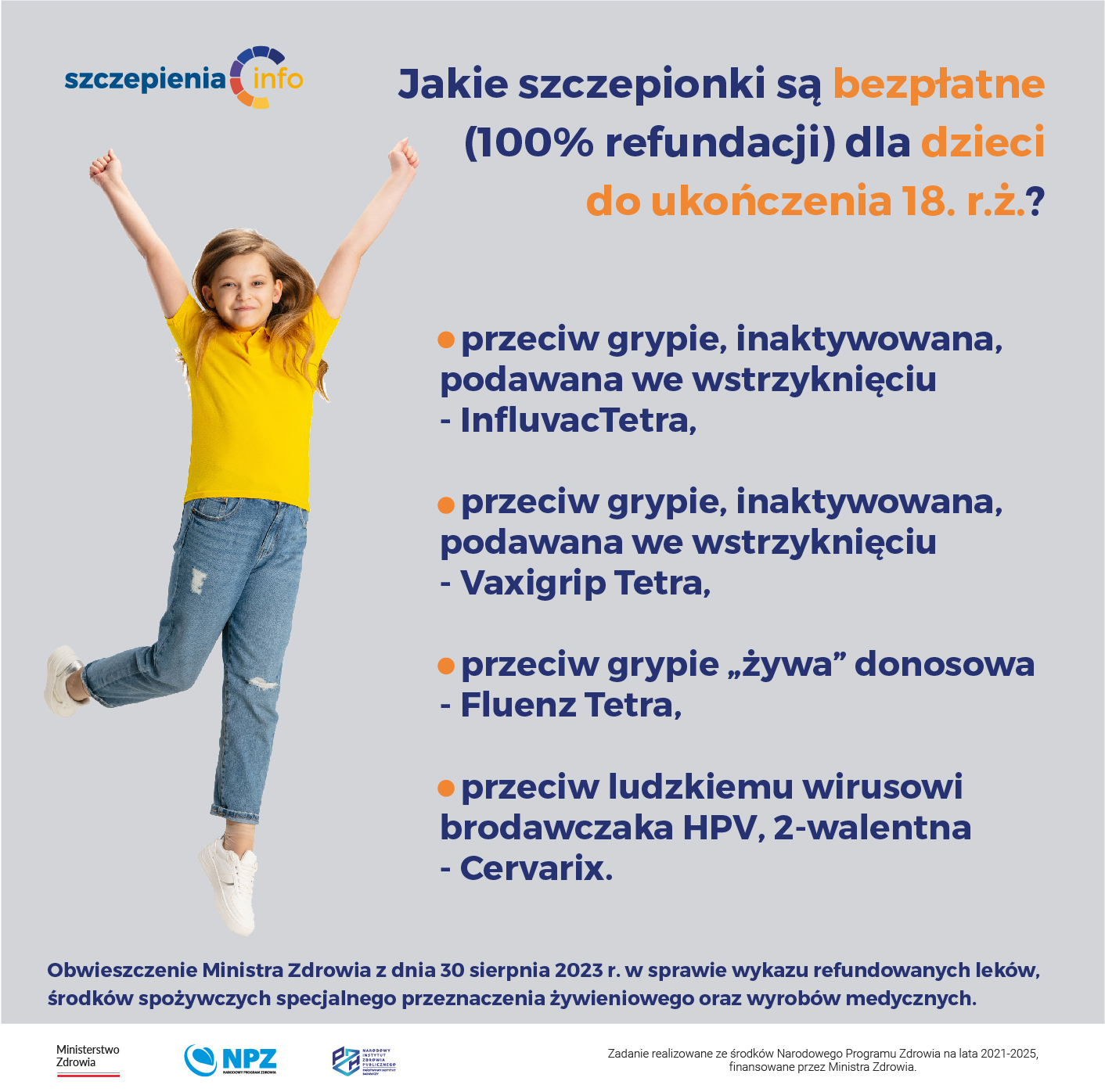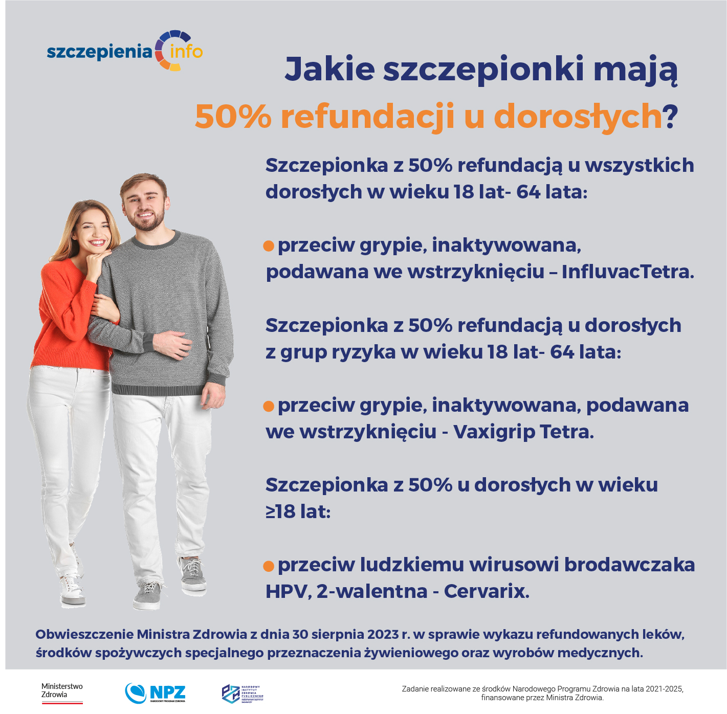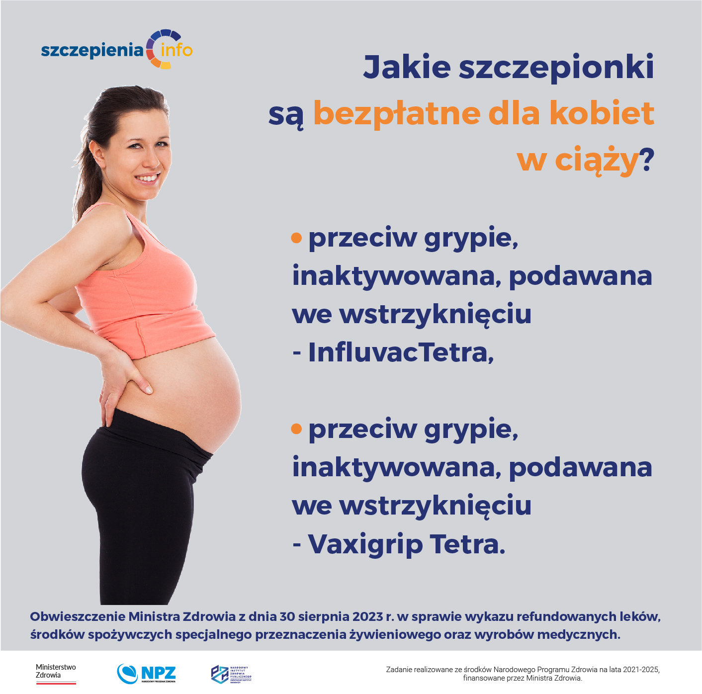 Aktualne pozostają zasady refundacji „leki bezpłatne dla kobiet w ciąży” na szczepionki przeciw grypie (szczepionki inaktywowane (Influvac Tetra, Vaxigrip Tetra).