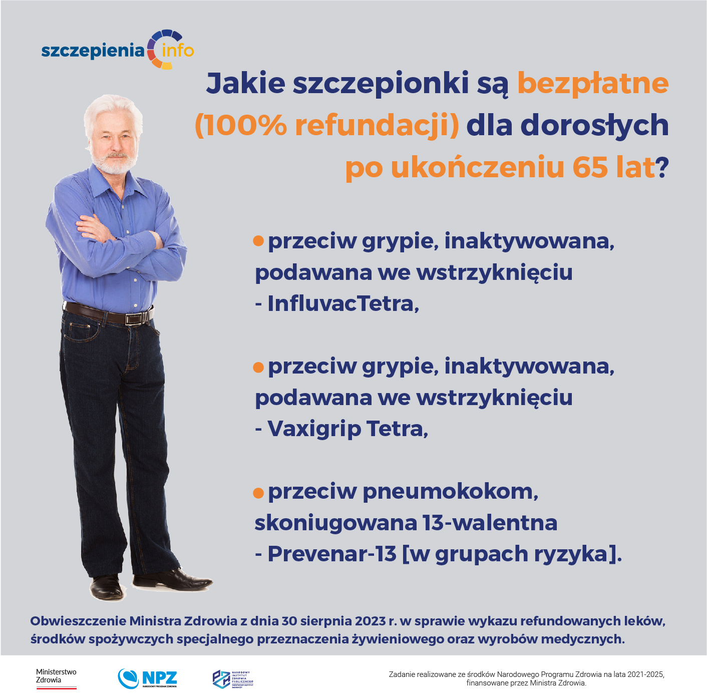 Wśród bezpłatnych szczepionek dla dorosłych po ukończeniu 65 lat znajdują się:
