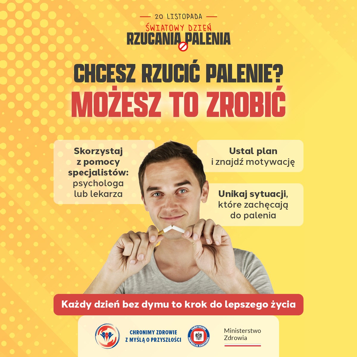Dla osób, które chcą rzucić palenie, dostępna jest Telefoniczna Poradnia Pomocy Palącym pod numerem 801 108 108, czynna od poniedziałku do piątku w godzinach 9:00-21:00.