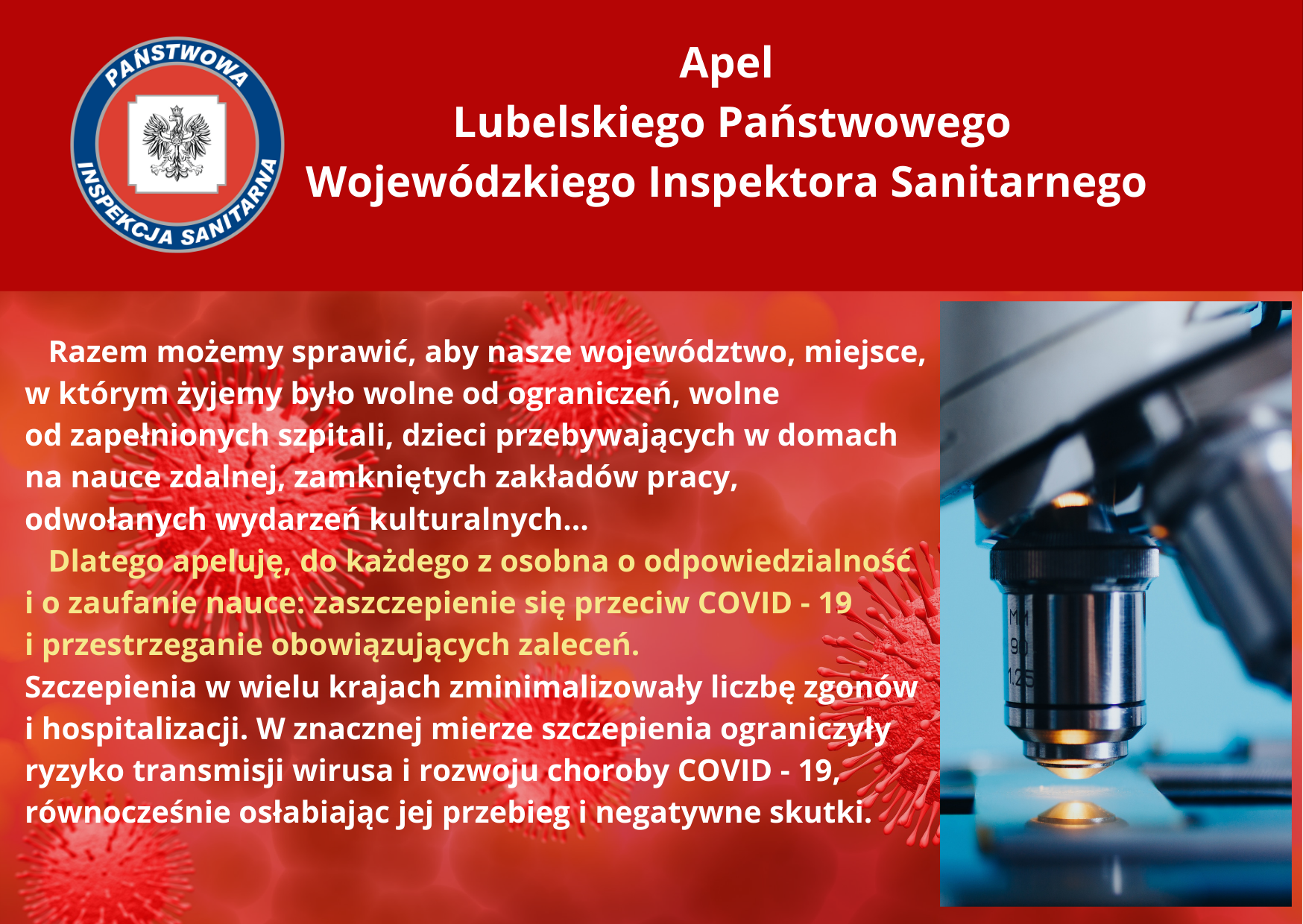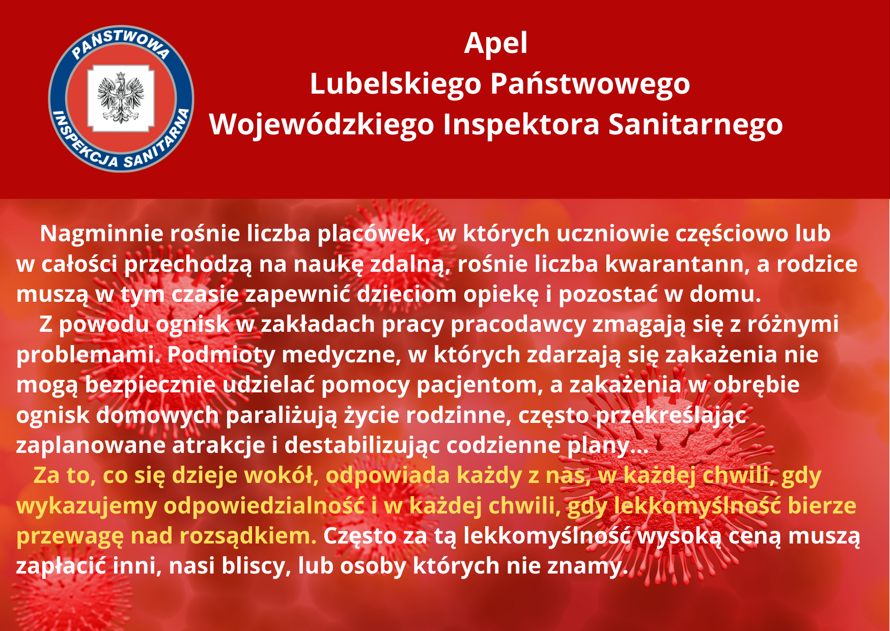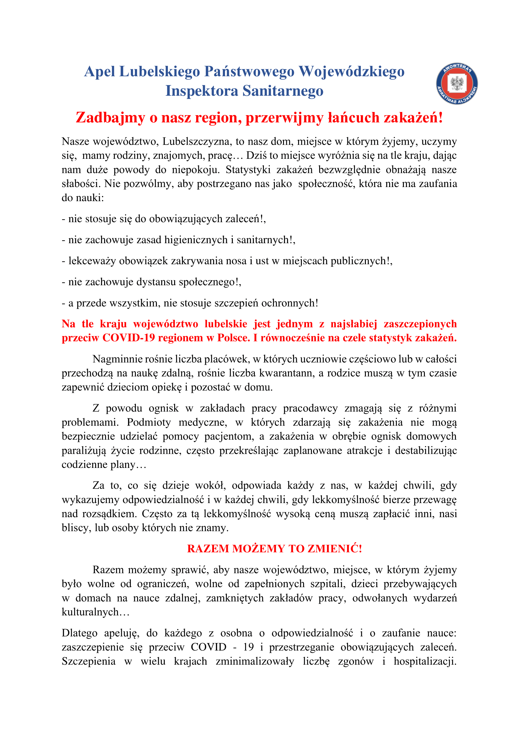 Apel Lubelskiego Państwowego Wojewódzkiego Inspektora Sanitarnego