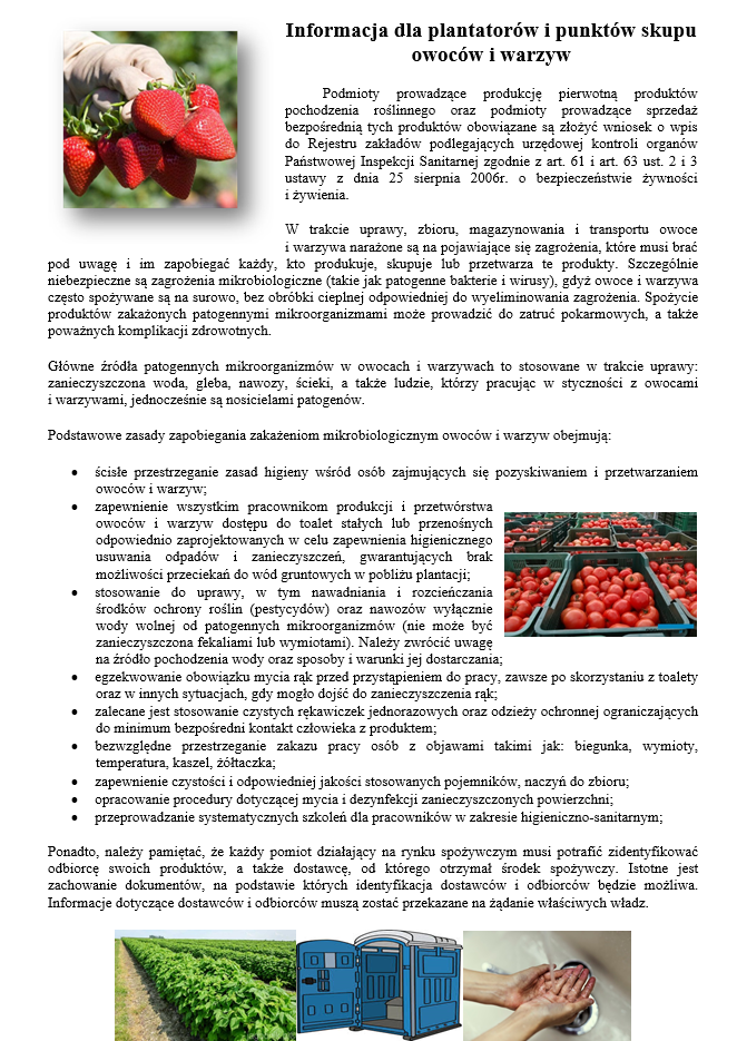 do świeżych owoców i warzyw na etapie produkcji podstawowej poprzez przestrzeganie zasad higieny" dostępnych poniżej.