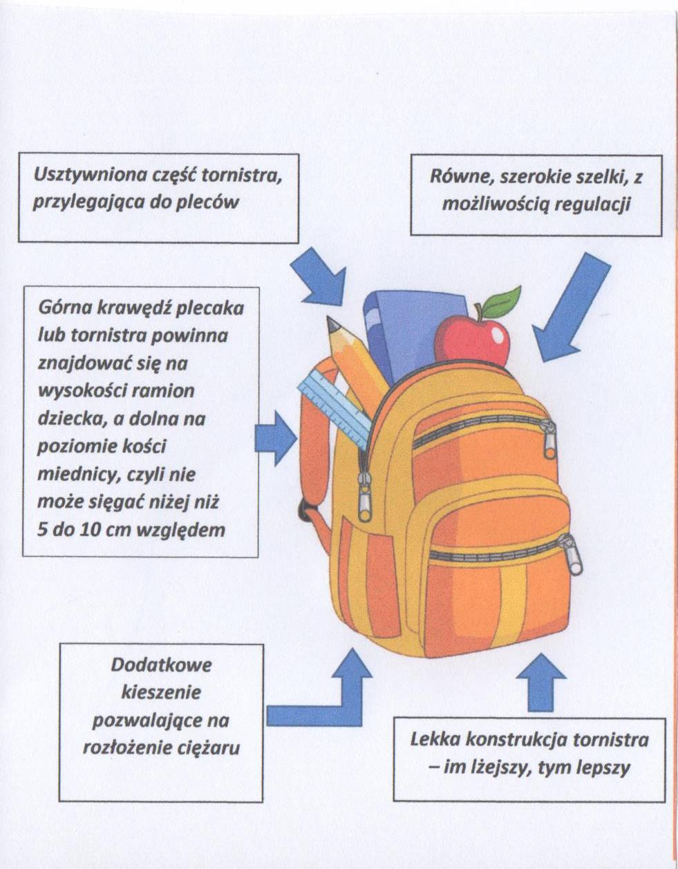 - konieczne jest kontrolowanie przez rodziców zawartości tornistra, aby zapobiec zabieraniu przez uczniów zbędnych rzeczy,