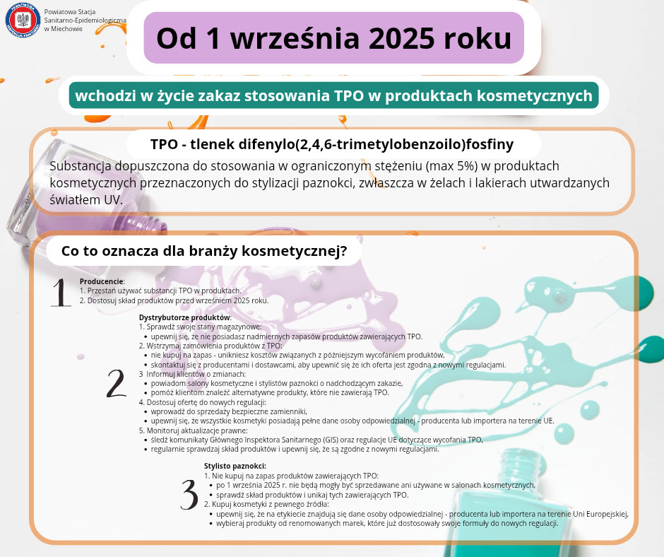 Od dnia 1 września 2025 r. stosowanie TPO w produktach kosmetycznych będzie zabronione.