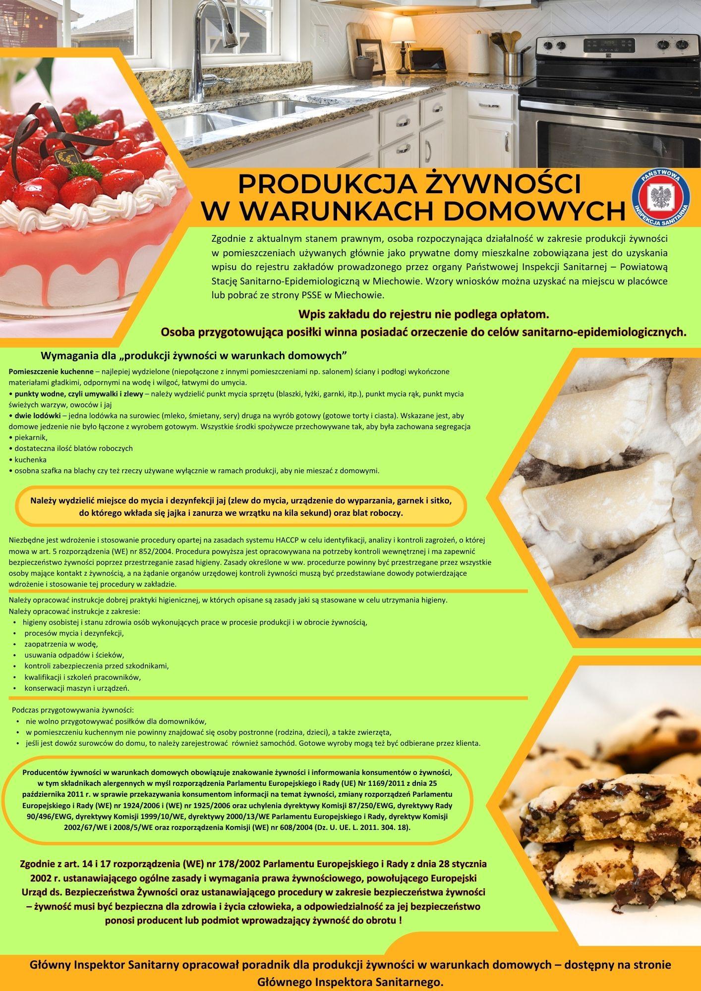 Główny Inspektor Sanitarny opracował poradnik dla produkcji żywności w warunkach domowych – dostępny na stronie Głównego Inspektora Sanitarnego.