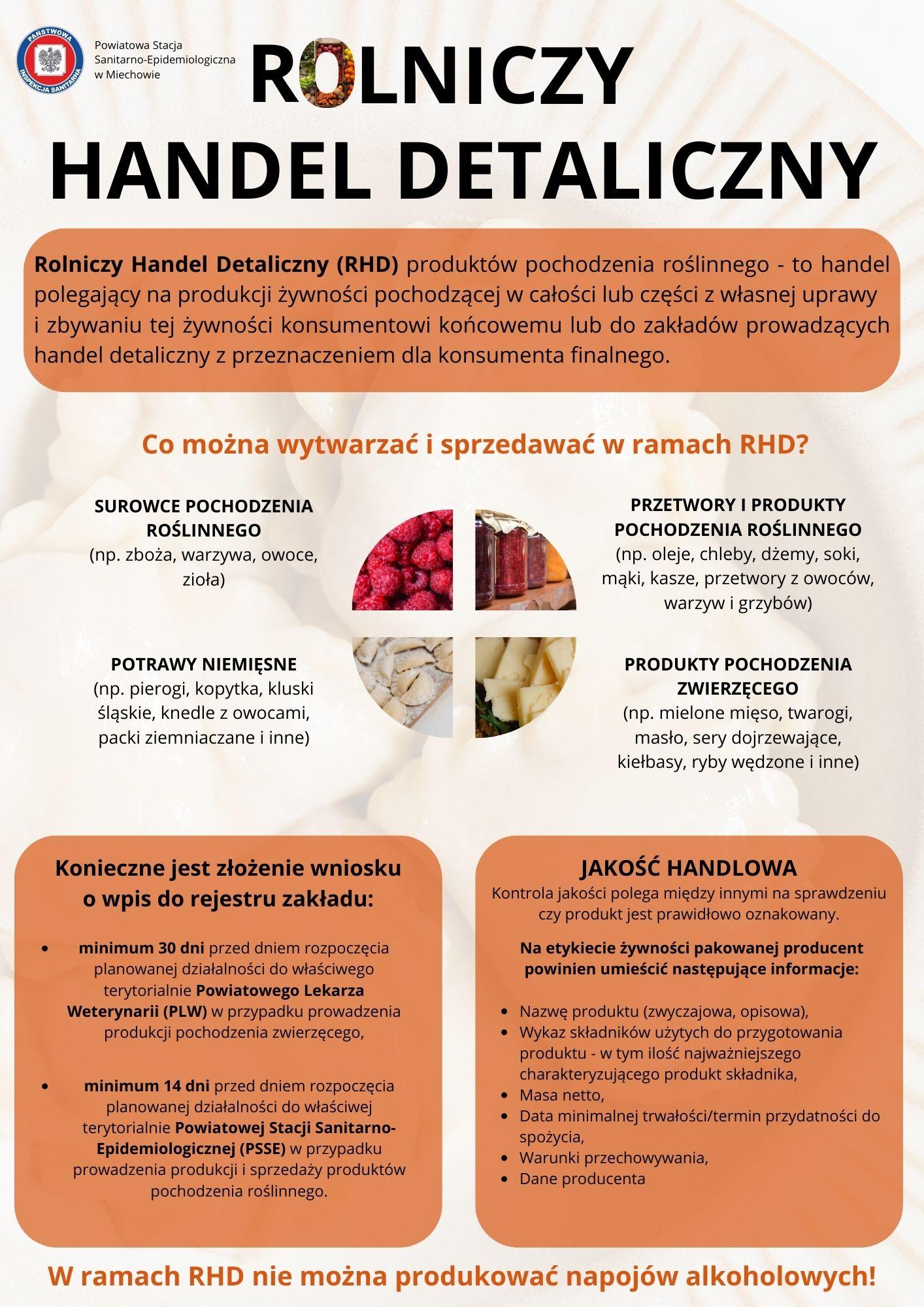 Rolniczy Handel Detaliczny (RHD) produktów pochodzenia roślinnego - to handel polegający na produkcji żywności pochodzącej w całości lub części z własnej uprawy i zbywaniu tej żywności konsumentowi końcowemu lub do zakładów prowadzących handel detaliczny z przeznaczeniem dla konsumenta finalnego.
