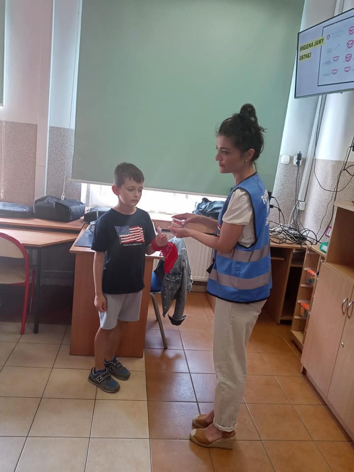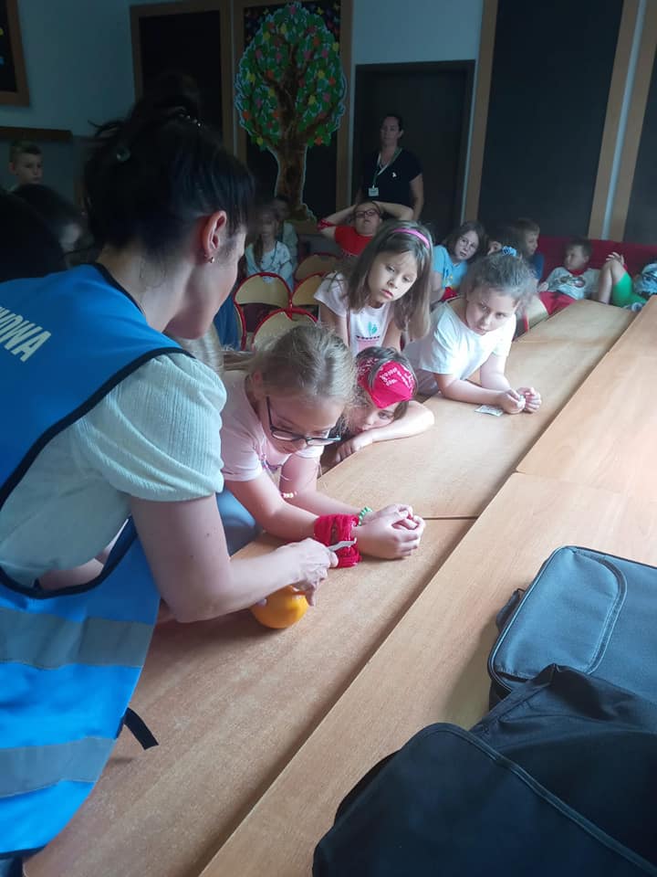W ramach akcji "Bezpieczny wypoczynek letni 2022" w Szkoła Podstawowa nr 2 w Międzychodzie pracownik Oświaty Zdrowotnej i Promocji Zdrowia przeprowadził zajęcia edukacyjne dla dzieci przebywających na półkolonii. Rozmawialiśmy o bezpiecznych zachowaniach podczas wakacji, profilaktyce chorób odkleszczowych oraz na temat zasad higieny jamy ustnej z wykorzystaniem modelu szczęki, a także materiałów dydaktycznych opracowanych przez Wojewódzką Stacje Sanitarno-Epidemiologiczną w Poznaniu. Podczas zajęć dzieci mogły również poznać technikę prawidłowego usuwania kleszczy co zostało uwiecznione na zdjęciach.