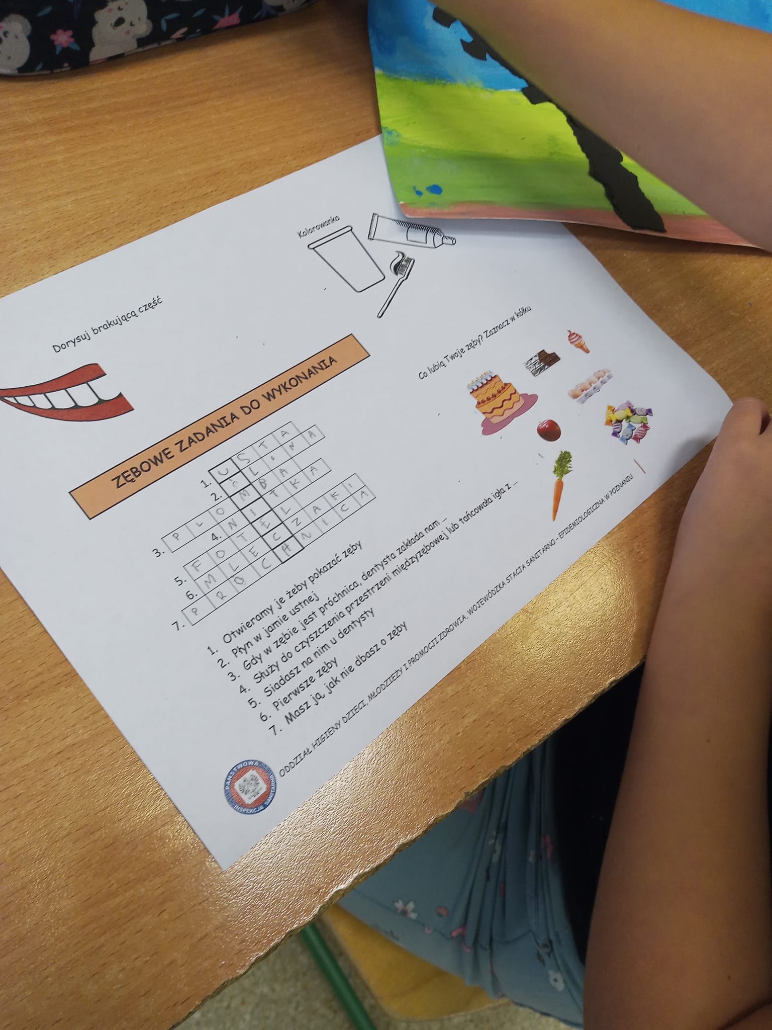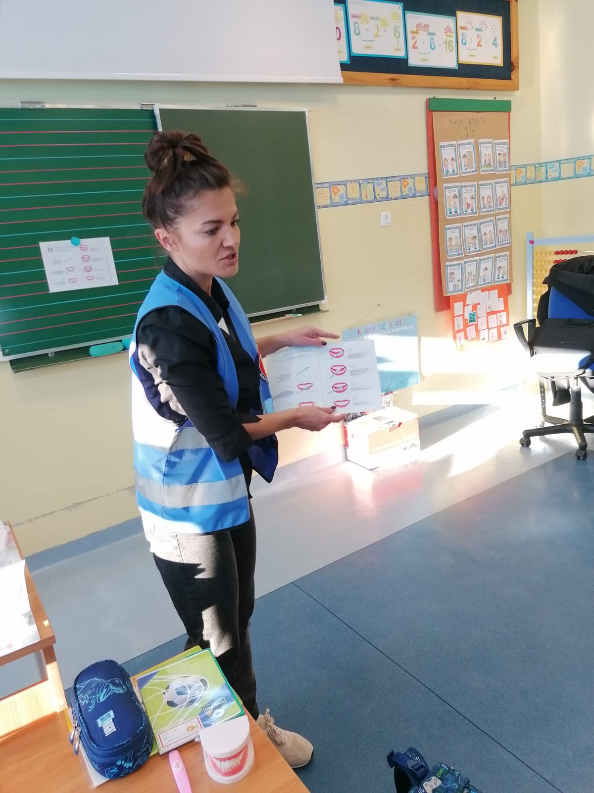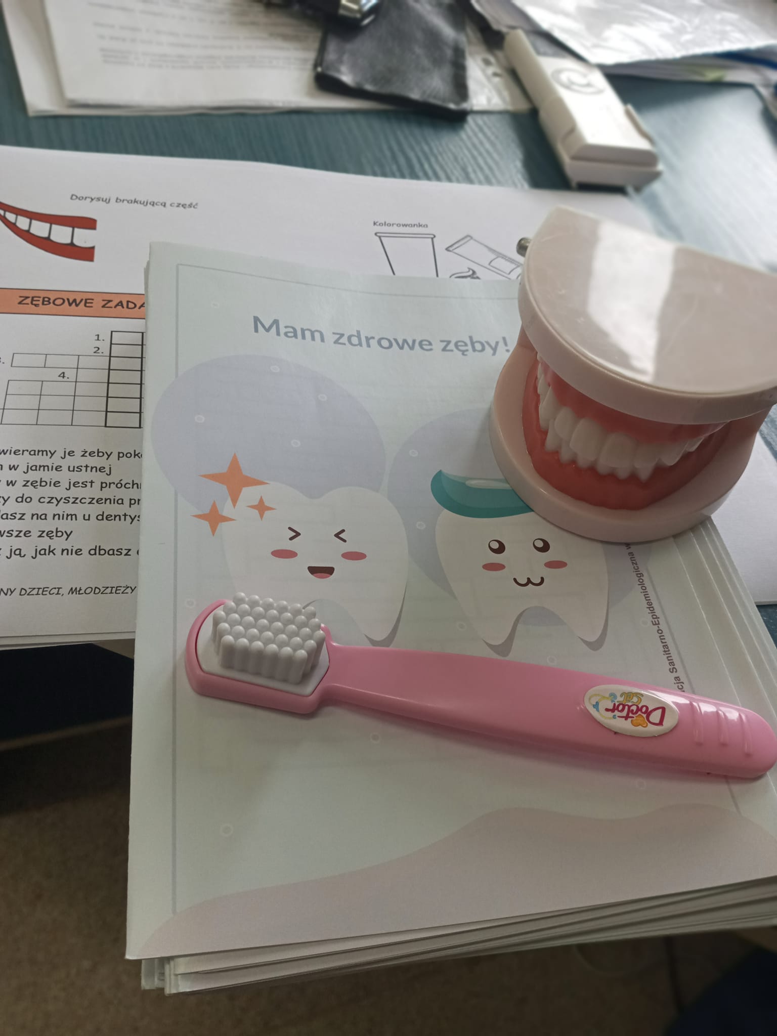 Tematem przewodnim była prawidłowa higiena jamy ustnej, czym zajmuję się lekarz dentysta oraz co to jest próchnica. Na spotkaniu pracownik pionu Oświaty Zdrowotnej i Promocji Zdrowia przy użyciu szczęki zębowej pokazywał w jaki sposób krok po kroku prawidłowo myć zęby. Podczas zajęć dzieci otrzymały broszury z zadaniami do rozwiązania "Mam zdrowe zęby"- graficzny materiał edukacyjny na temat higieny jamy ustnej skierowany do dzieci w wieku wczesnoszkolnym opracowany przez pracowników Wojewódzkiej Stacji Sanitarno-Epidemiologicznej w Poznaniu.