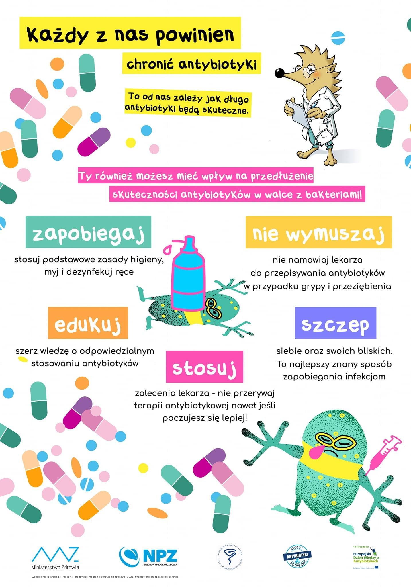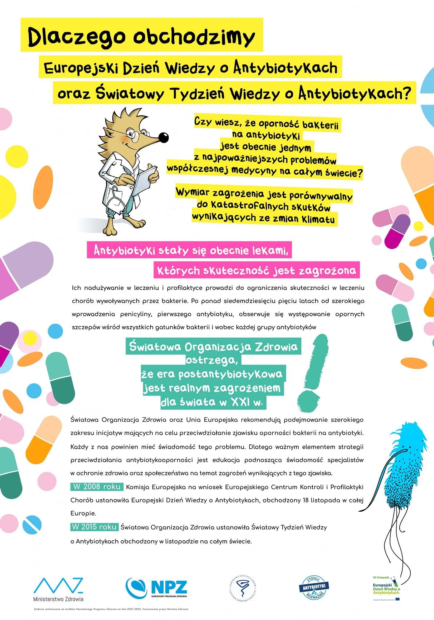 Zapraszamy do zapoznania się z materiałami informacyjnymi Europejskiego Dnia Wiedzy o Antybiotykach dostępnymi na stronie internetowej „Narodowego Programu Ochrony Antybiotyków” http://antybiotyki.edu.pl/edwa/