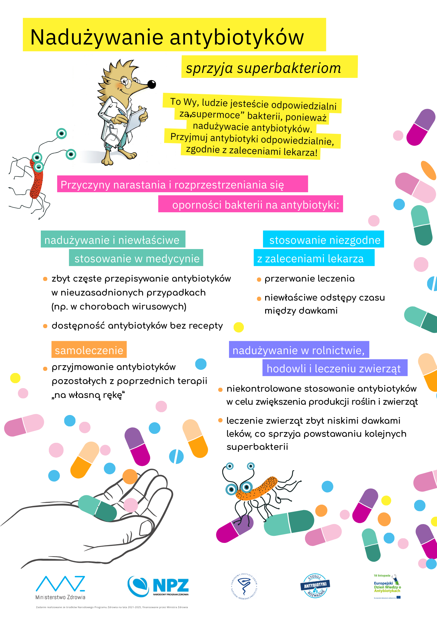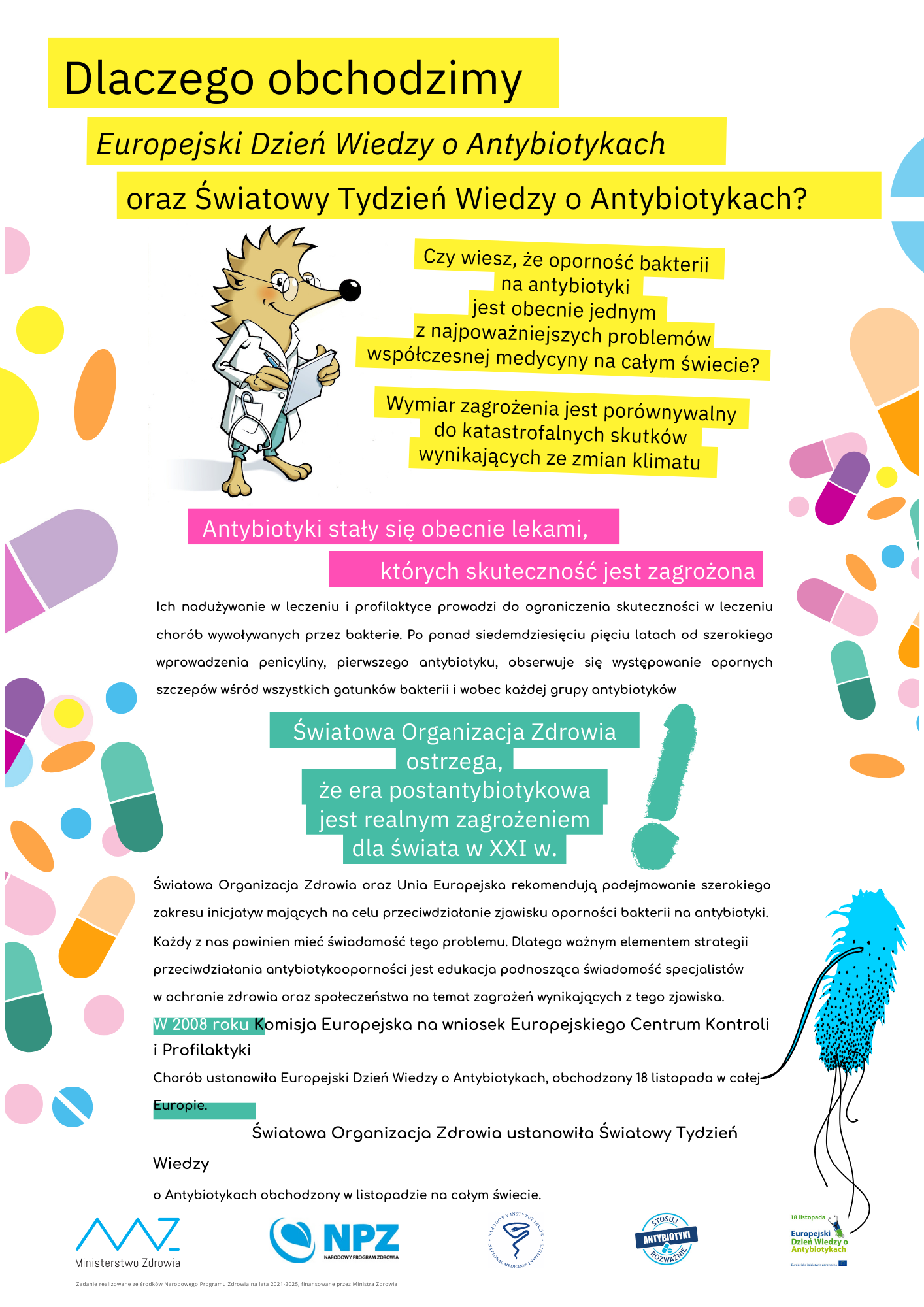 W Polsce koordynatorem kampanii Światowy Tydzień Wiedzy o Antybiotykach jest Narodowy Instytut Leków w Warszawie. Działania te prowadzi w ramach realizacji Narodowego Programu Zdrowia na lata 2021-2025, finansowanego ze środków Ministra Zdrowia.