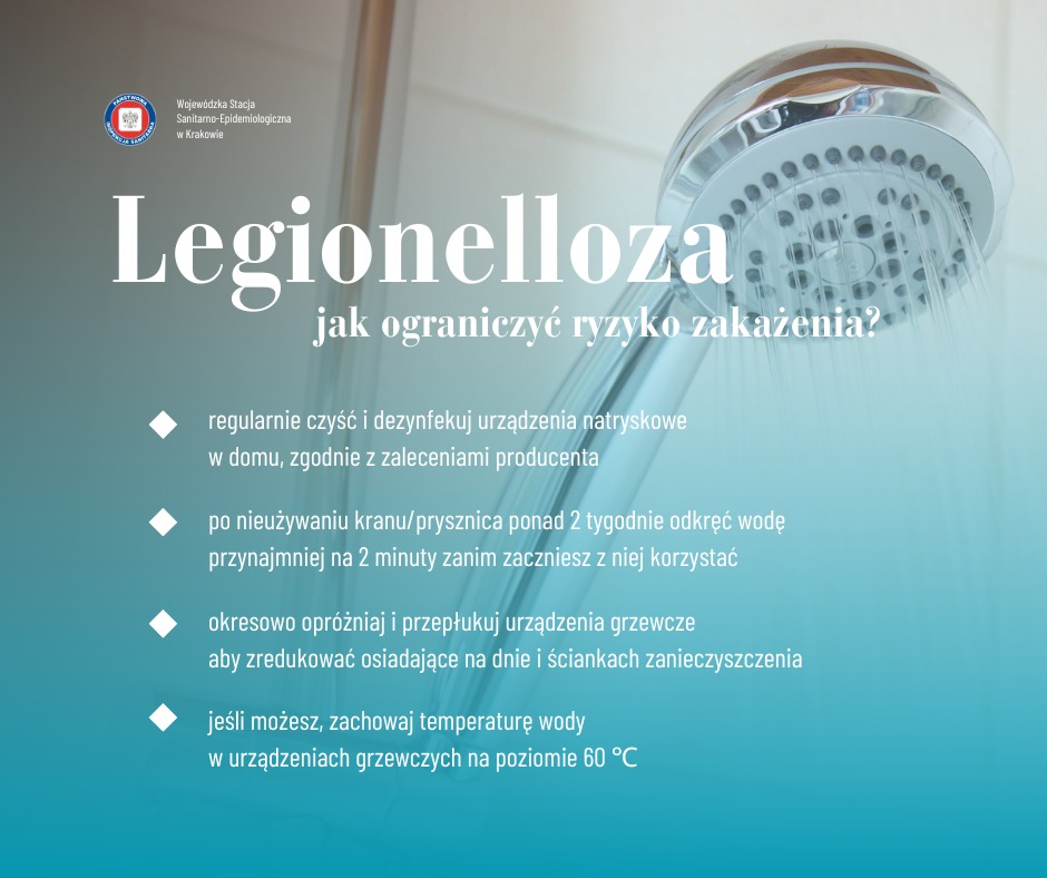 Działania profilaktyczne obejmują m.in. regularne czyszczenie zbiorników wodnych i okresowe badanie wody: