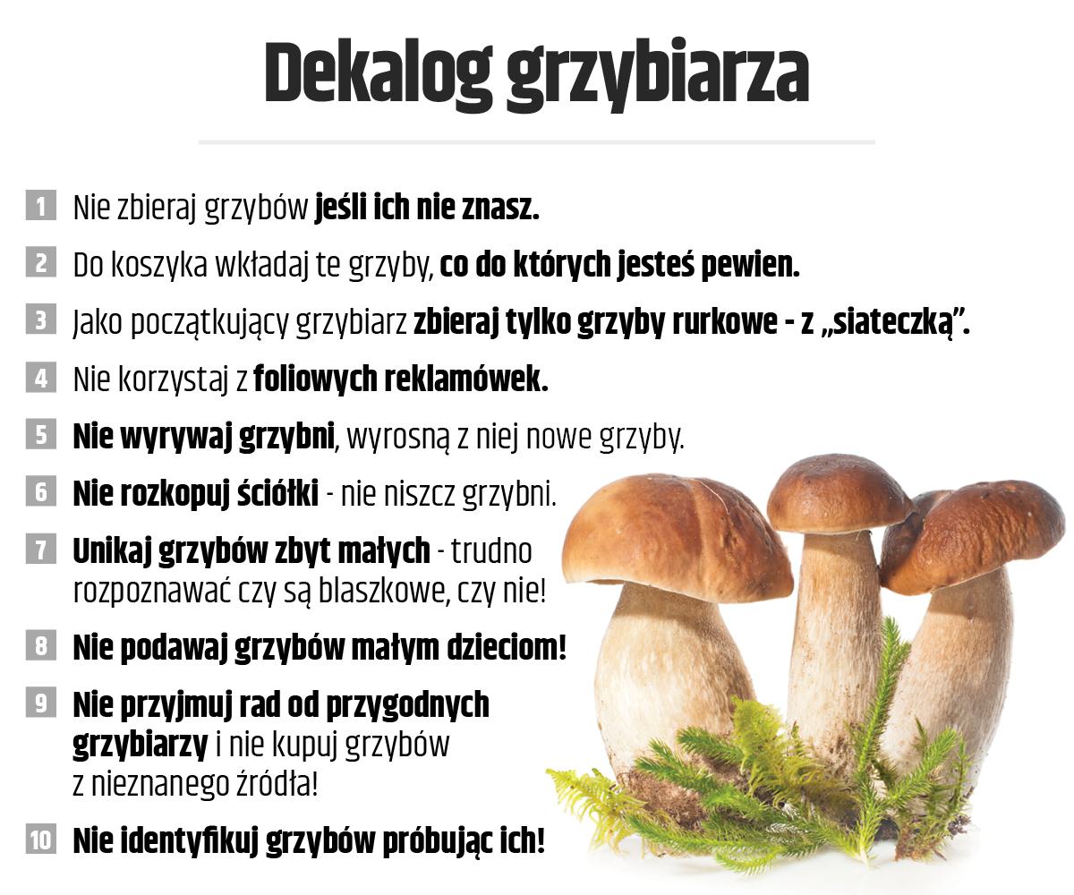 Skonfrontuj swoje zbiory z atlasem grzybów. Jeśli podejrzewasz zatrucie, wezwij pomoc lub przewieź chorego do szpitala.