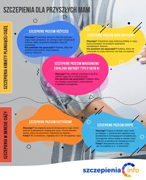 W ciąży można bezpiecznie podawać szczepionki inaktywowane. Zaleca się szczepienie przeciw grypie oraz przeciw krztuścowi szczepionką przeciw błonicy, tężcowi i krztuścowi. Inne szczepionki zabite mogą być podawane w szczególnie uzasadnionych sytuacjach narażenia na zakażenie. Kobietom w ciąży nie podaje się szczepionek żywych, tj. szczepionki przeciw odrze, śwince i różyczce (MMR) czy szczepionki przeciw ospie wietrznej.