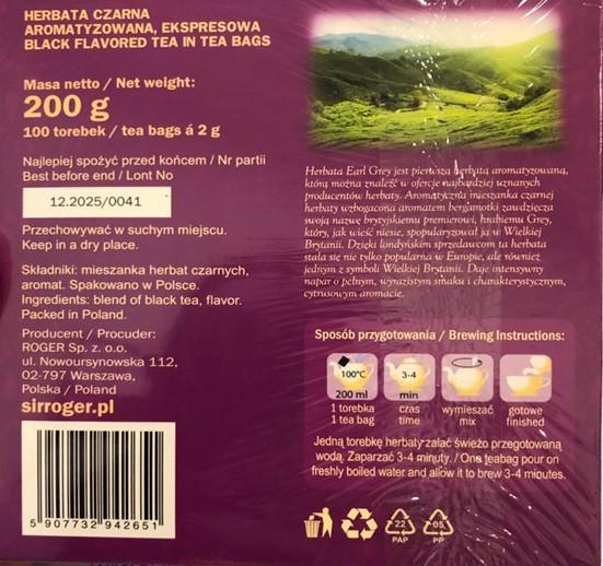 Ostrzeżenie publiczne dotyczące żywności: Alkaloidy pirolizydynowe w określonej partii ekspresowej herbaty czarnej aromatyzowanej EARL GREY2