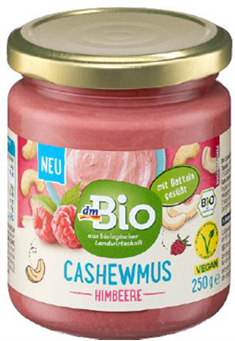 Nazwa produktu: dmBio Mus z orzechów nerkowca z maliną, 250g
