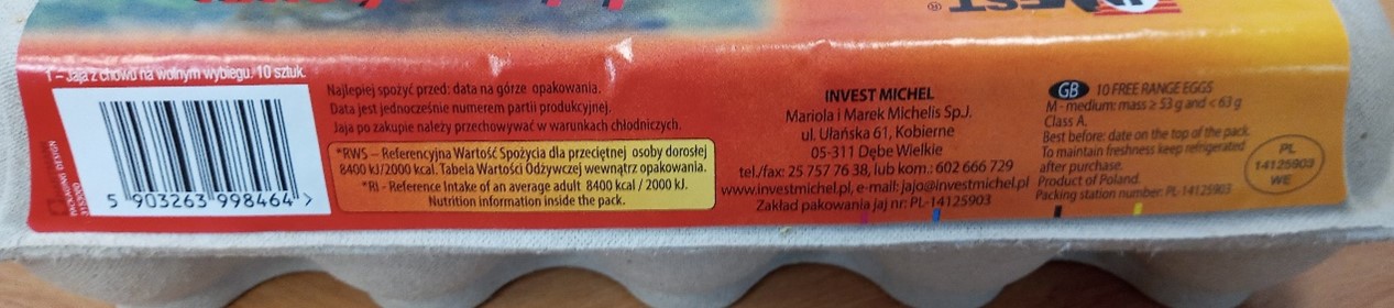 Nazwa produktu: Jaja z chowu na wolnym wybiegu, 1-PL, świeżość klasa A, klasa wagowa M
