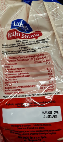 Produkt: Płatki żytnie, Lubella, 500 g