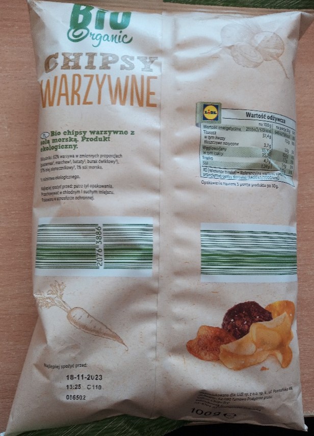 Produkt: Bio Organic, Chipsy Warzywne z solą morską, Snack Day, 100 g
