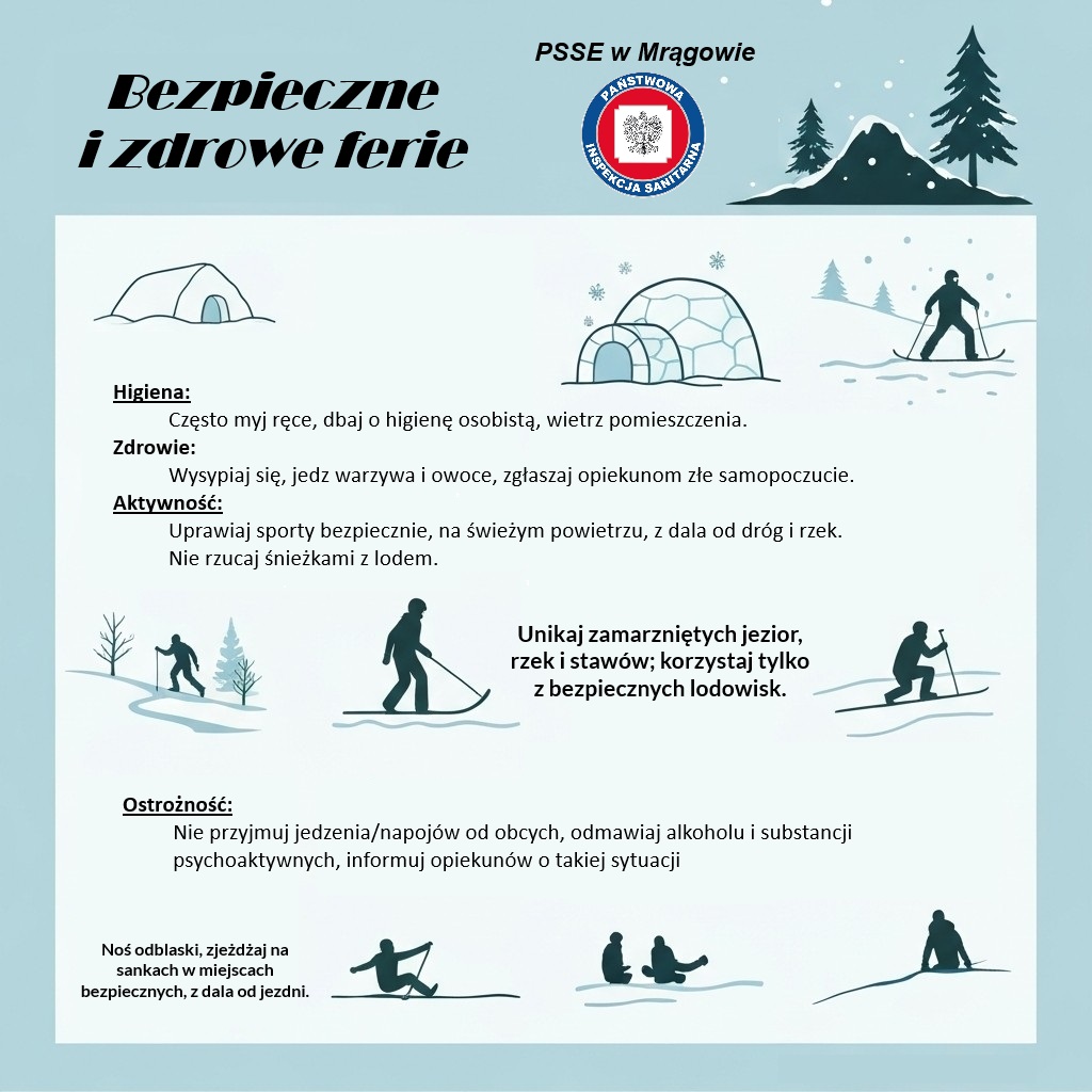 Zadbajmy wspólnie o to, aby ferie zimowe były czasem bezpiecznym, zdrowym i pełnym pozytywnych doświadczeń.