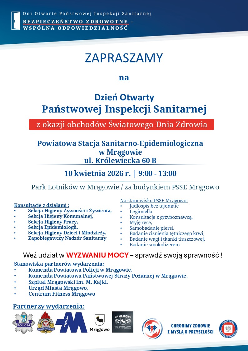 10 kwietnia 2026 r. w Powiatowej Stacji Sanitarno-Epidemiologicznej w Mrągowie w ramach obchodów Światowego Dnia Zdrowia odbył się Dzień Otwarty Państwowej Inspekcji Sanitarnej.