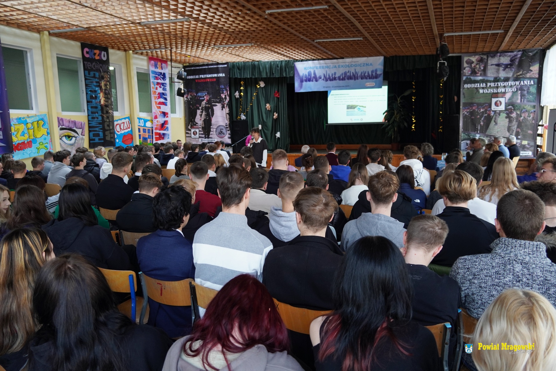 Dnia 22.10.2025 w Centrum Kształcenia Zawodowego i Ustawicznego w Mrągowie odbyła się konferencja w ramach projektu „Zatrzymajmy wodę! Szkolne ogrody deszczowe i edukacja ekologiczna w Mrągowie”. Rozmawialiśmy o tym, jak mądrze gospodarować wodą, chronić zasoby naturalne i jak każdy z nas - uczniowie, nauczyciele, mieszkańcy - może działać na rzecz środowiska.