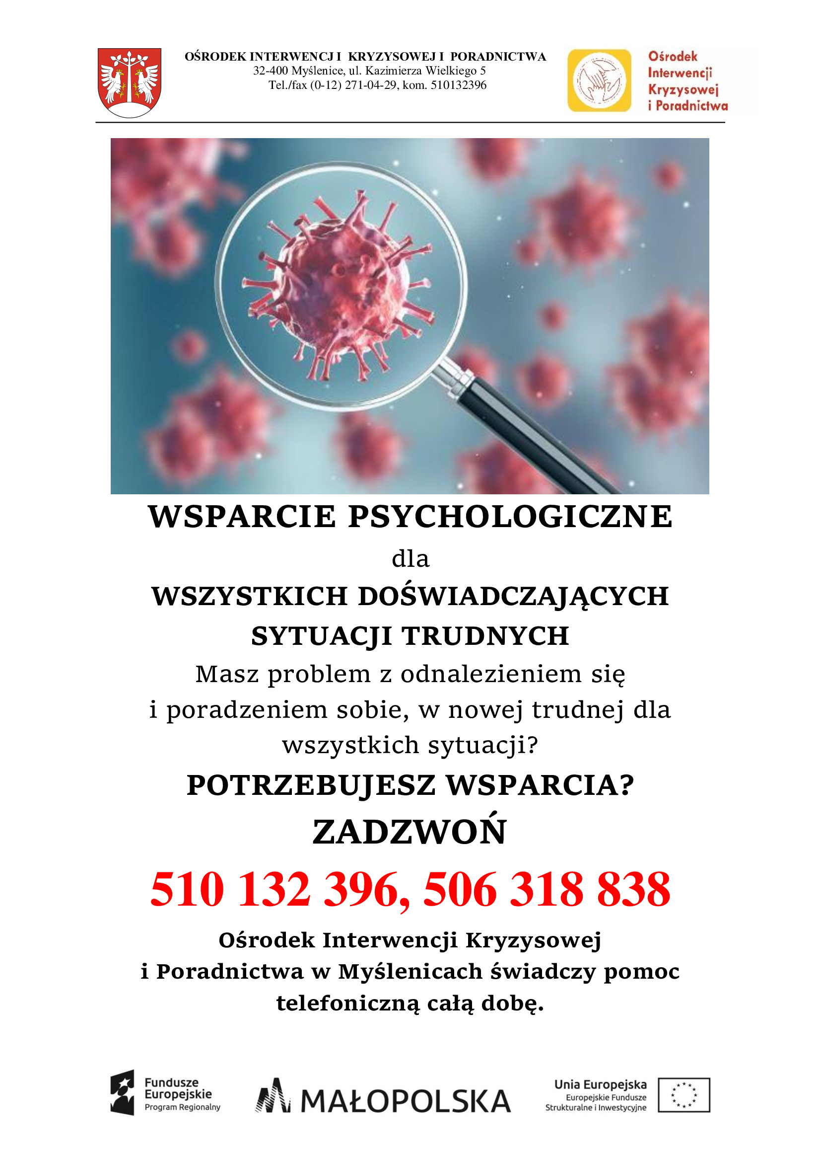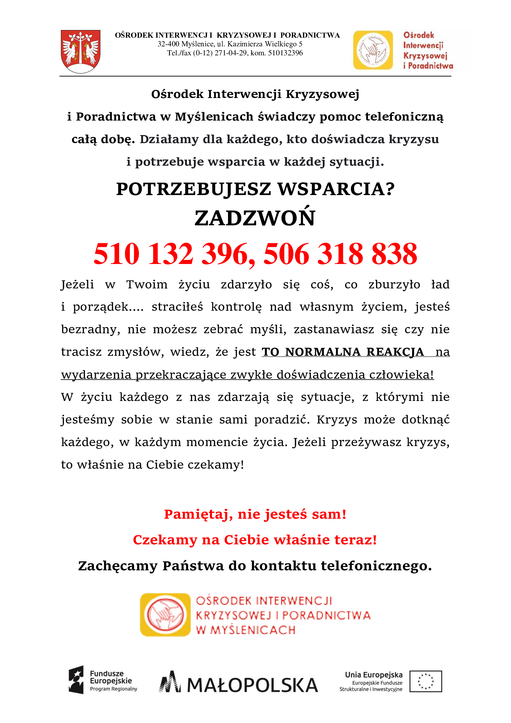 W załączeniu ulotki przygotowane przez Ośrodek Interwencji Kryzysowej i Poradnictwa w Myślenicach