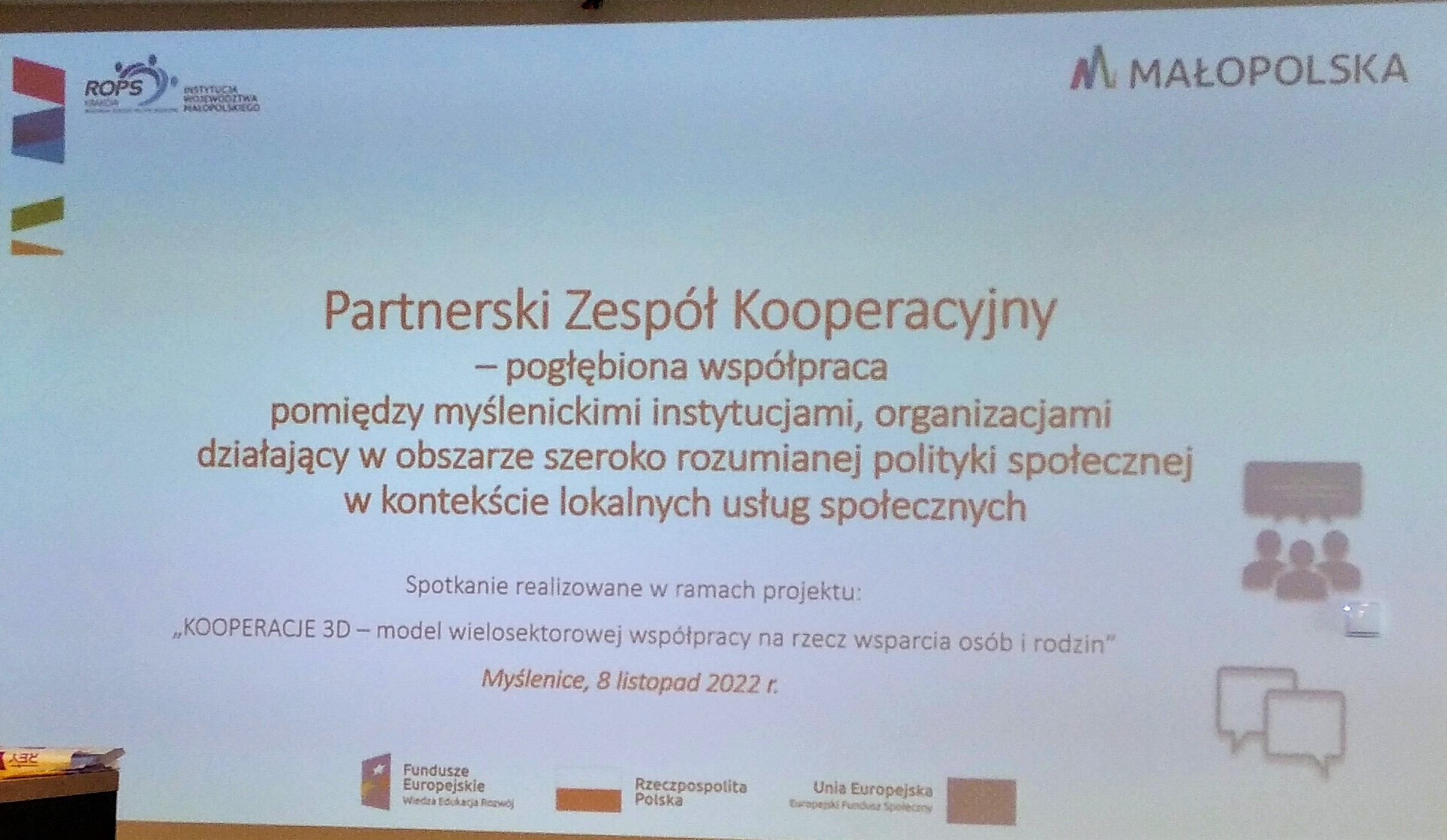 Spotkania odbywają się w ramach realizowanego przez ROPS projektu- „KOOPERACJE 3D- model wielosektorowej współpracy na rzecz wsparcia osób i rodzin”.