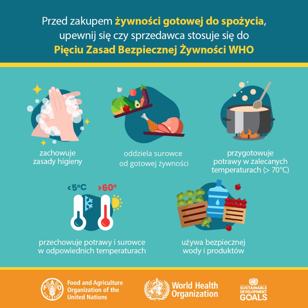 Dodatkowo Światowa Organizacja Zdrowia (WHO) opracowała bardzo przydatną listę kontrolną 5 zasad bezpiecznej żywności: