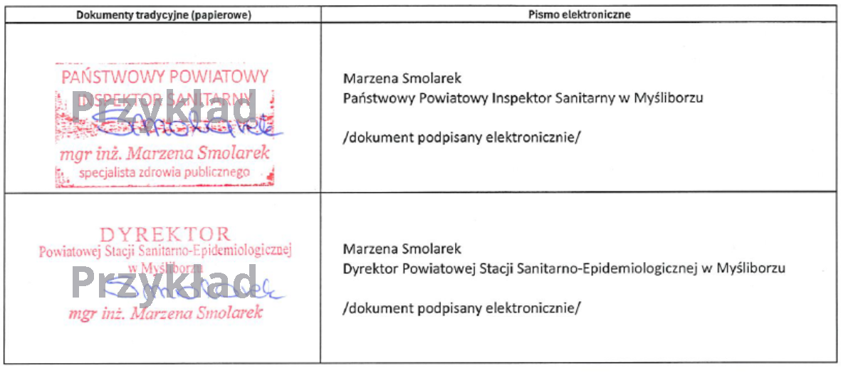 Dotychczas wszystkie pisma podpisywane były przy użyciu pieczęci, natomiast od 2 grudnia 2024 roku pisma elektroniczne będą opatrzone w zapis wg poniższego wzoru: