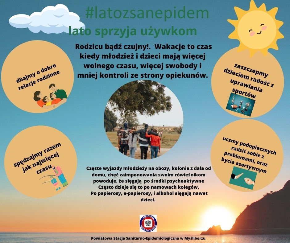 Wakacje, to okres nie tyko odpoczynku, ale też moment kiedy dzieci i młodzież pozostawione bez nadzoru rodziców, szkoły mogą zacząć eksperymentować z używkami. Po papierosy, a obecnie e-papierosy, i alkohol sięgają nawet dzieci. Trudno jest to całkowicie wyeliminować, jednak świadomość rodziców i nastolatków co do przyczyn sięgania po używki, jak również ich skutków, może stanowić czynnik ochronny. Pamiętajmy o tym szczególnie w wakacje, kiedy młodzież ma więcej czasu wolnego, więcej swobody i mniej kontroli ze strony osób dorosłych. W okresie wakacyjnym, kiedy wspólne wyjazdy nastolatków zdarzają się najczęściej, trzeba zwrócić wyjątkową uwagę na dziecko. Rodzice przede wszystkim powinni rozważyć, czy jest ono gotowe na samodzielny wyjazd i nie będzie podejmować żadnych ryzykownych zachowań. Warto także zastanowić, czy dziecko zostało przygotowane odpowiednio na wszystkie potencjalne niebezpieczeństwa i czy towarzystwo, w jakim obraca się nastolatek, to osoby rozsądne, godne zaufania oraz znane rodzicom.