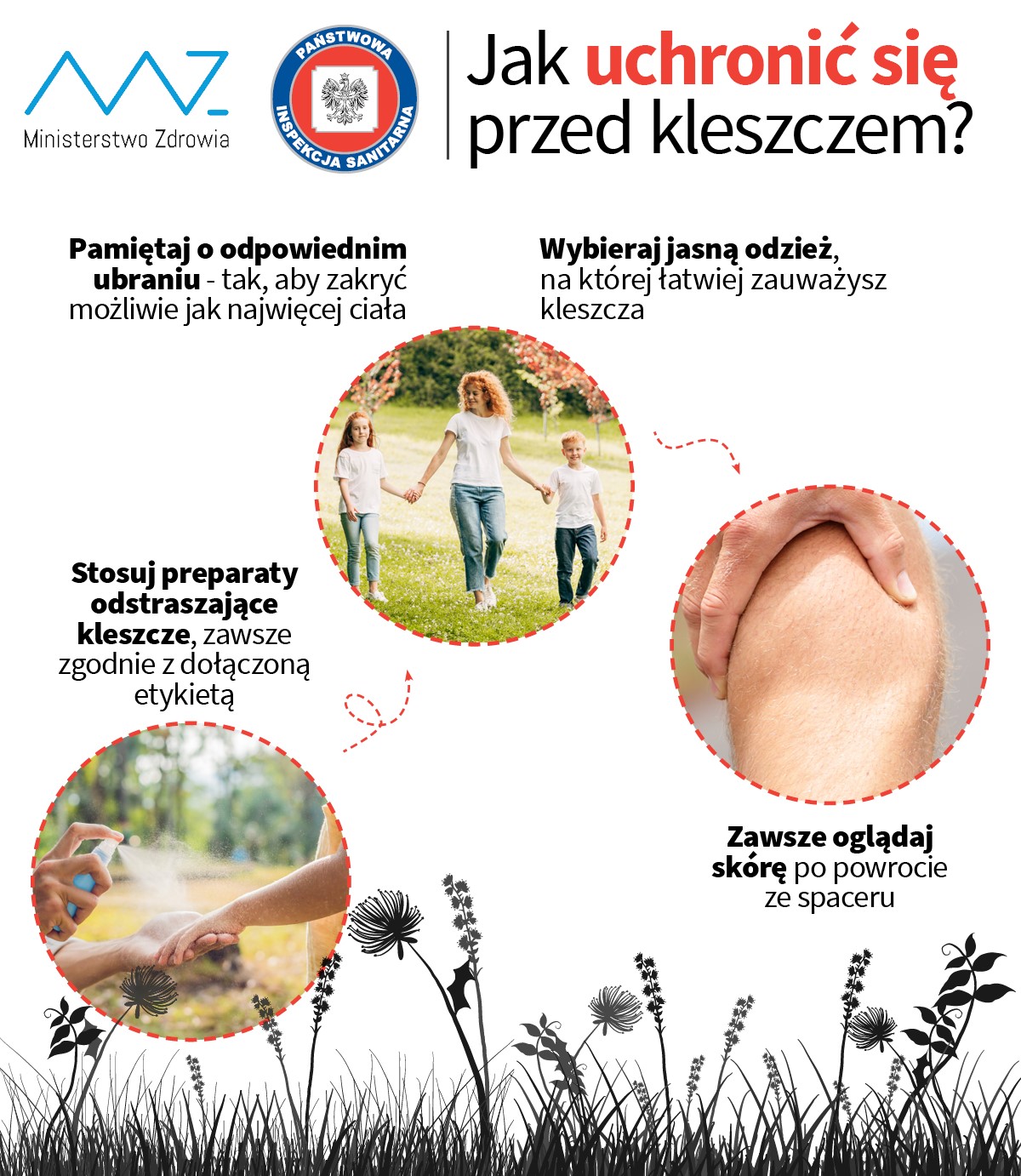 - noszenie długich spodni (nogawki należy wpuścić do skarpetek), koszul z długim rękawem,