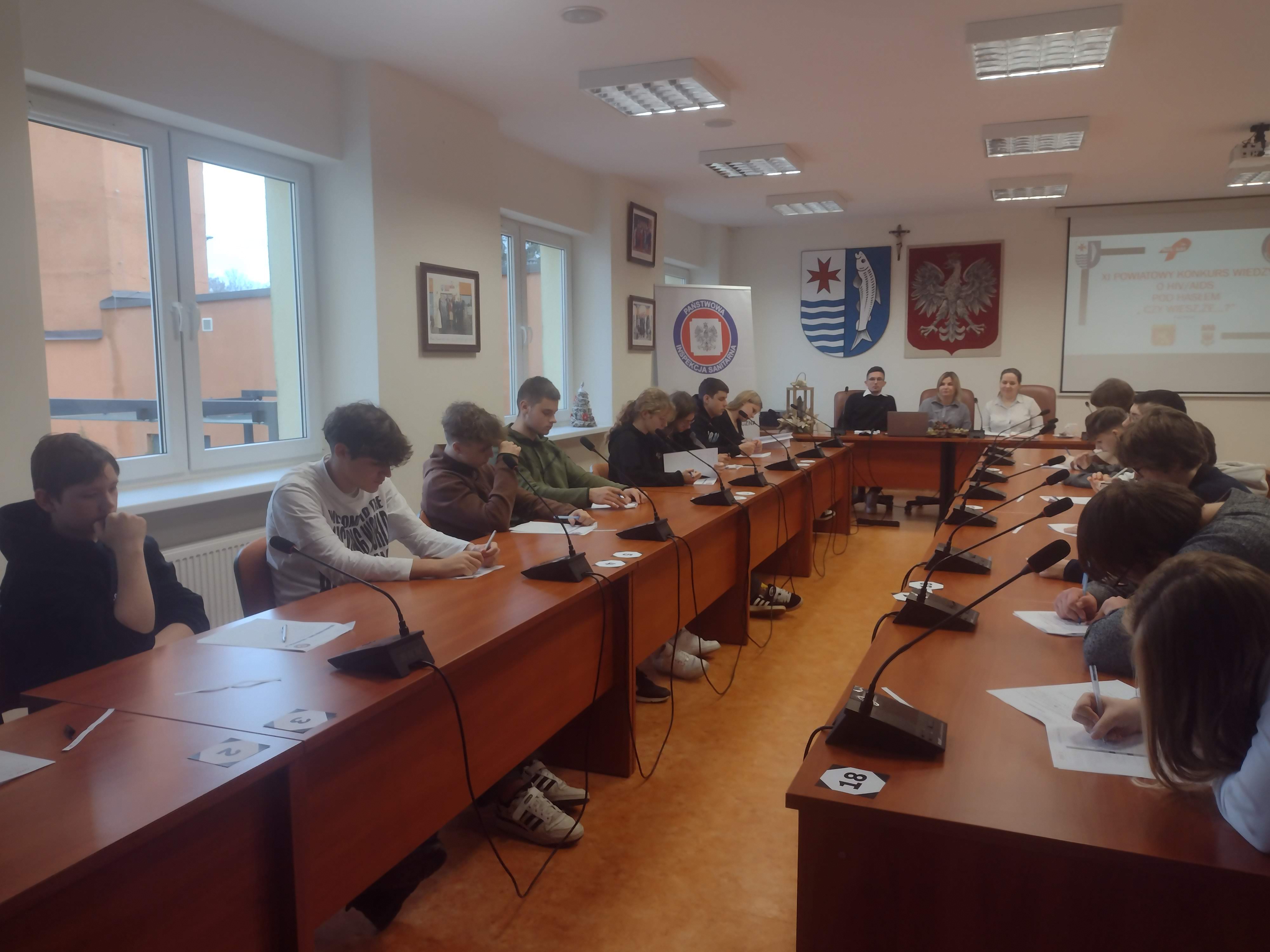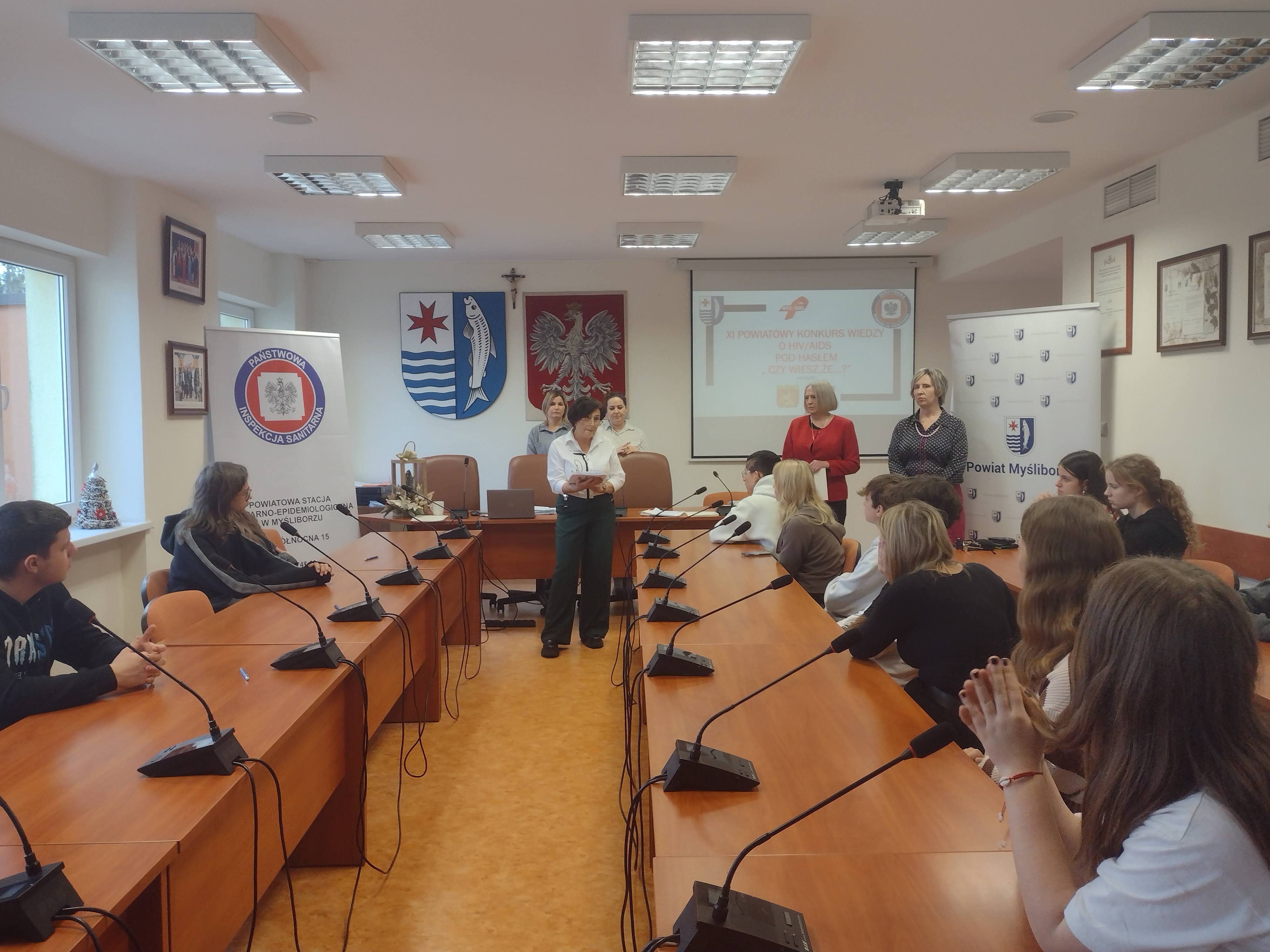 15 grudnia 2023 r. w siedzibie Starostwa Powiatowego w Myśliborzu spotkali się uczniowie reprezentacji szkół ponadpodstawowych by wykazać się swoją wiedzą na temat HIV/AIDS. Byli to najlepsi uczniowie wyłonieni z konkursów przeprowadzonych na poziomie szkolnym. Łącznie w etapie szkolnym wzięło udział 205 uczniów.