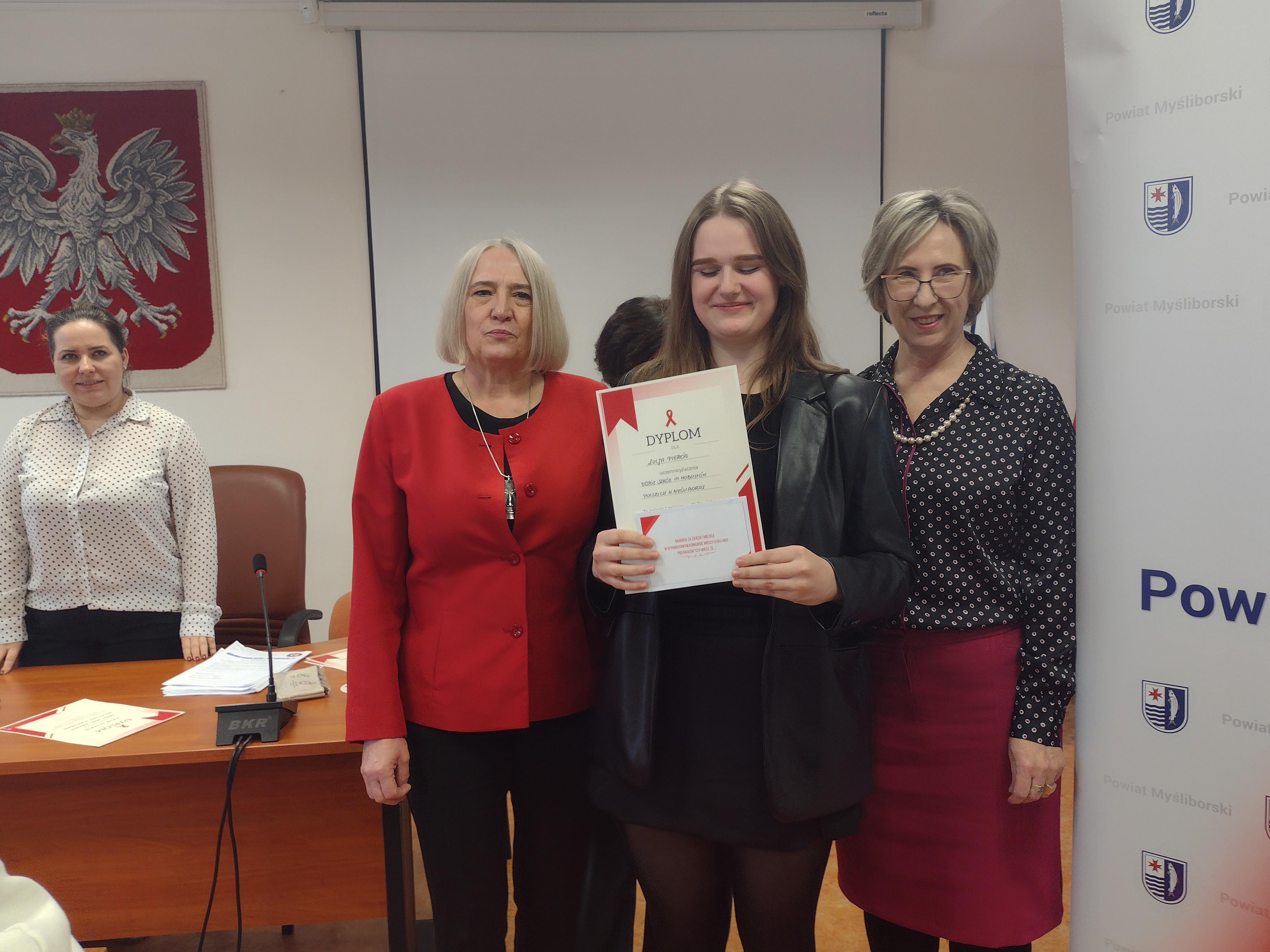 Nagrody wręczyli: Wicestarosta Powiatu Myśliborskiego Pani Alicja Prill oraz Pani Marzena Smolarek - Państwowy Powiatowy Inspektor Sanitarny w Myśliborzu.
