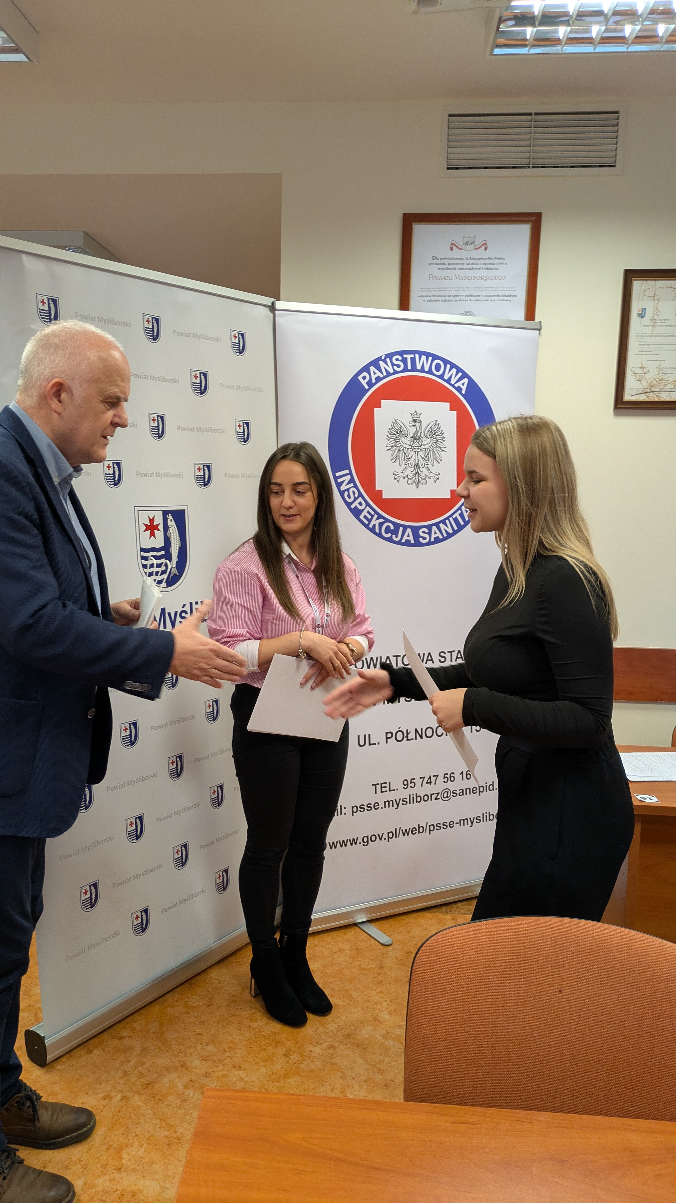 Nagrody wręczyli: Sekretarz Powiatu Myśliborskiego Pan Jarosław Ostry oraz w imieniu Państwowego Powiatowego Inspektora Sanitarnego w Myśliborzu Pani Anna Stawikowska.
