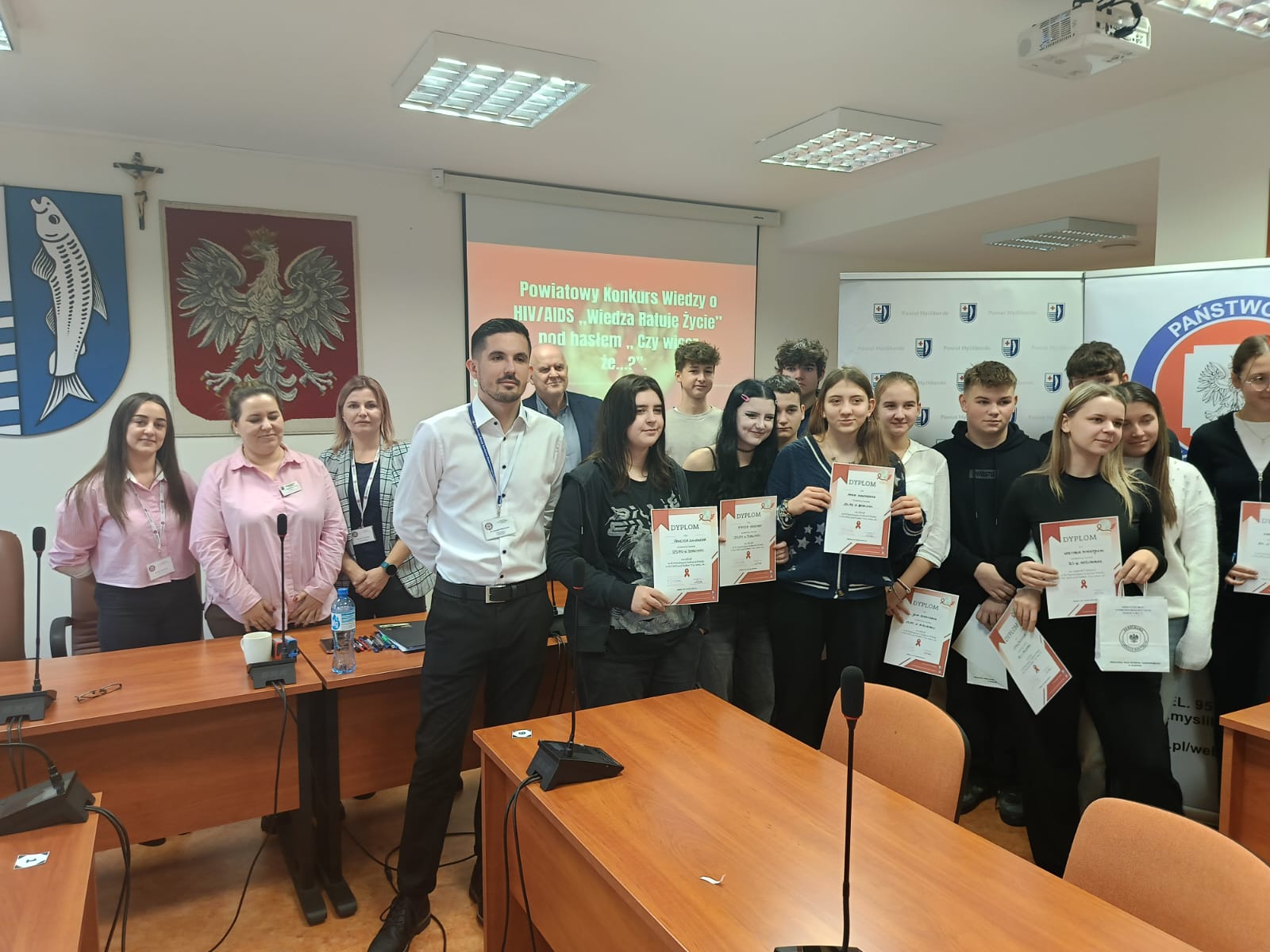 18 grudnia 2024 r. w siedzibie Starostwa Powiatowego w Myśliborzu spotkali się uczniowie reprezentacji szkół ponadpodstawowych by wykazać się swoją wiedzą na temat HIV/AIDS. Byli to najlepsi uczniowie wyłonieni z konkursów przeprowadzonych na poziomie szkolnym.