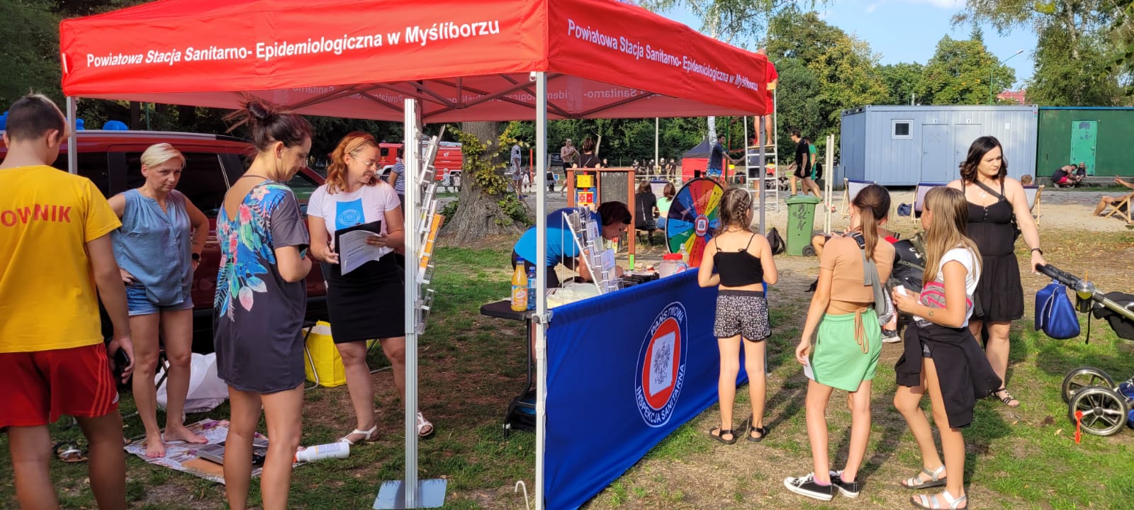 W ramach wojewódzkiej kampanii wakacyjnej „Z Inspekcją Sanitarną się znam i bezpiecznie wypoczywam” Pracownicy Powiatowej Stacji Sanitarno-Epidemiologicznej w Myśliborzu w dniu 26.08.2022 r. prowadzili działania informacyjno-profilaktyczne podczas festynu zorganizowanego z okazji zakończenia wakacji na plaży miejskiej w Dębnie. Festyn organizowany był przez Urząd Miejski w Dębnie we współpracy z Ośrodkiem Sportu i Rekreacji w Dębnie, Dębnowskim Ośrodkiem Kultury, Powiatową Strażą Pożarną, WOPR-em oraz Powiatową Stacją Sanitarno-Epidemiologiczną w Myśliborzu.