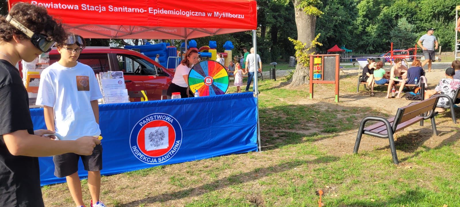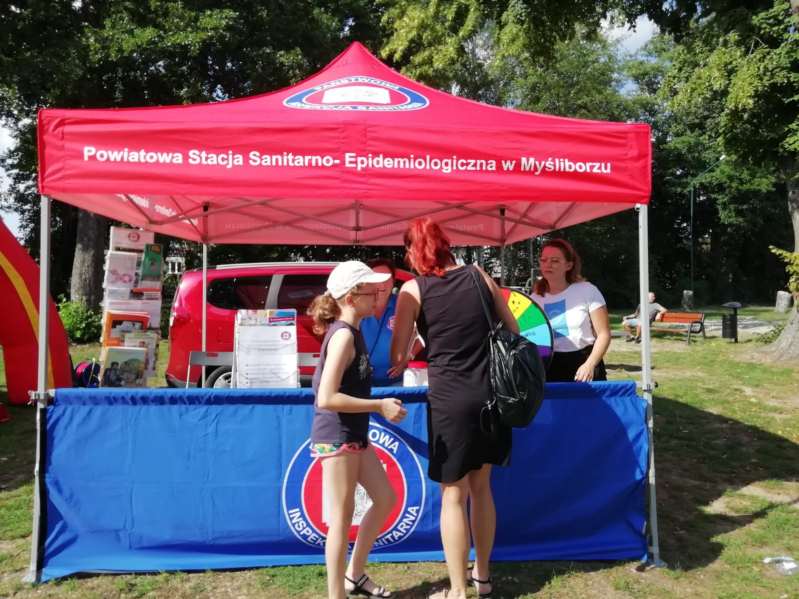 Przy stoisku obsługiwanym przez pracowników PSSE w Myśliborzu osobom dorosłym proponowano badania tlenku węgla (CO) w wydychanym powietrzu, pomiar ciśnienia krwi, analizę składu masy ciała, instruktaże z użyciem alkogogli i narkogogli symulujących stan po spożyciu alkoholu lub środków odurzających. Udzielano poradnictwa wraz z dystrybucją materiałów edukacyjnych z zakresu szeroko rozumianej profilaktyki zdrowotnej. Najmłodsi uczestnicy bawili się przy „Kole Fortuny”. Osoby uczestniczące w zabawie kręciły kołem i musiały wykonać zadanie, które wyznaczyło wylosowane pole. Były to między innymi: krzyżówki, rebusy, quizy, odpowiedzi na pytania, zagadki, a także różnego rodzaju zadania do wykonania np. pokaz prawidłowego szczotkowania zębów.