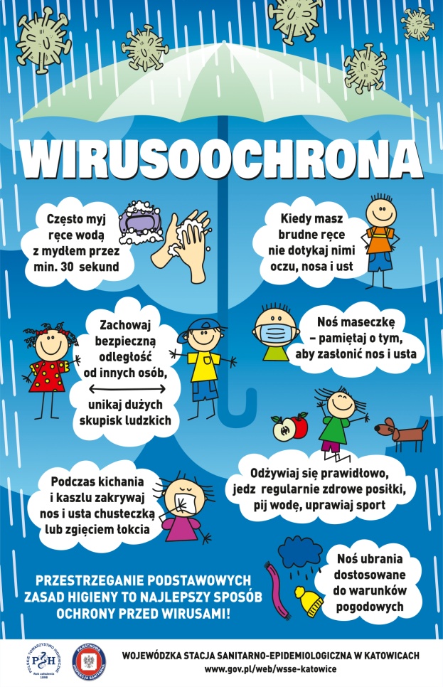 W związku z aktualną sytuacją epidemiologiczną związaną z rozprzestrzenianiem się wirusa SARS-CoV-2 oraz powrotem uczniów klas I-III do szkół podstawowych, mając na uwadze zdrowie i bezpieczeństwo najmłodszych dzieci oraz ich rodzin, Śląski Państwowy Wojewódzki Inspektor Sanitarny rozpoczyna na terenie województwa śląskiego realizację akcji informacyjno-edukacyjnej pn. „Wirusoochrona”.