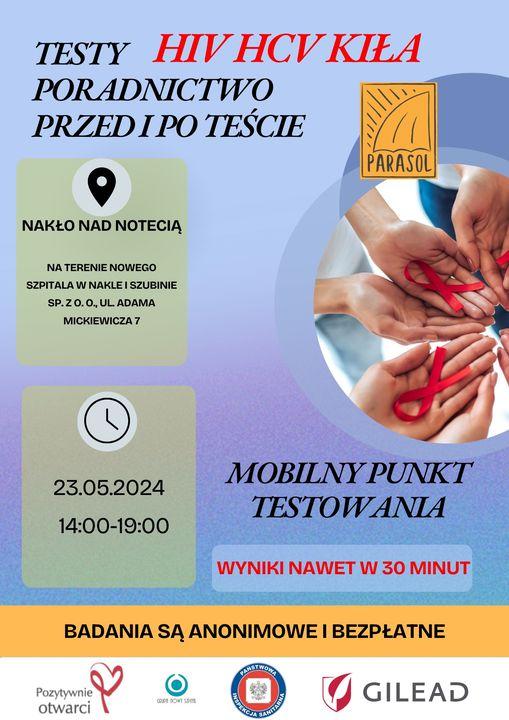 Państwowy Powiatowy Inspektor Sanitarny w Nakle nad Notecią wraz z Fundacją Parasol serdecznie zapraszają na bezpłatne i anonimowe testy HIV HCV i kiła.