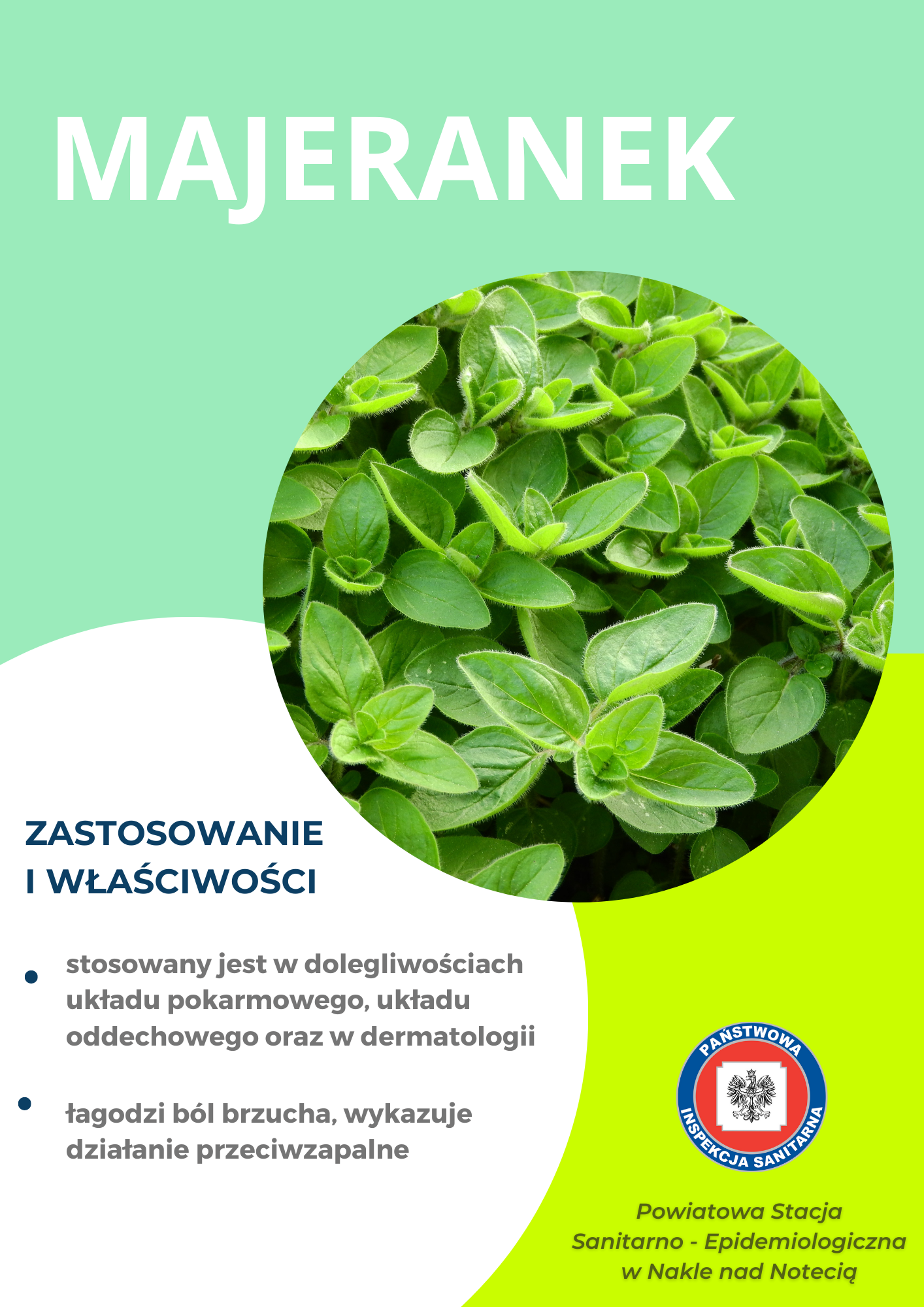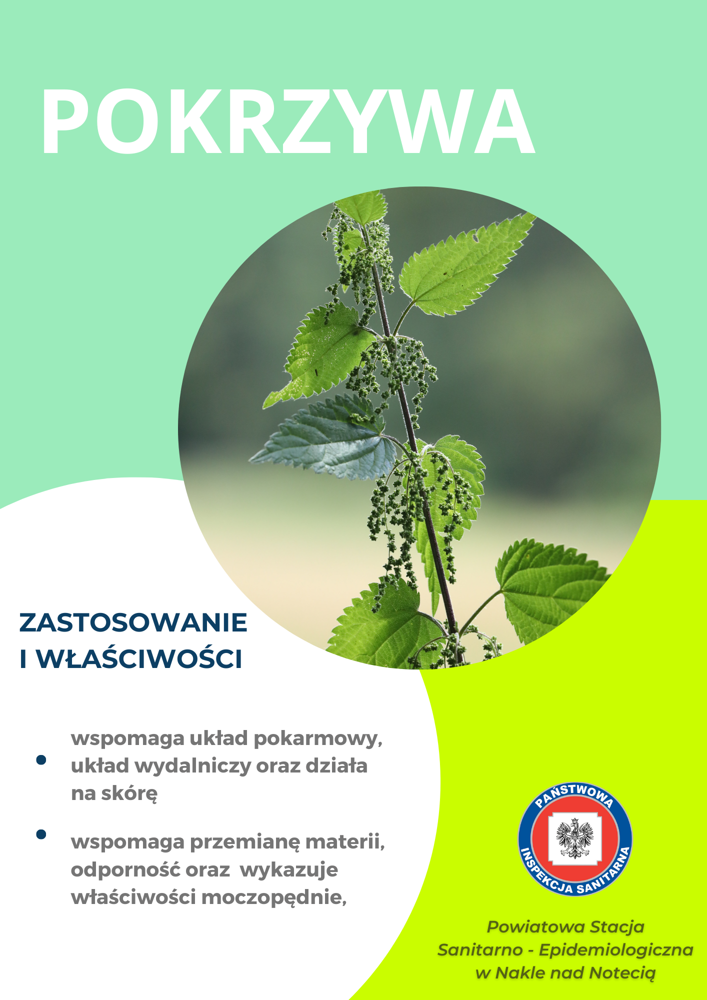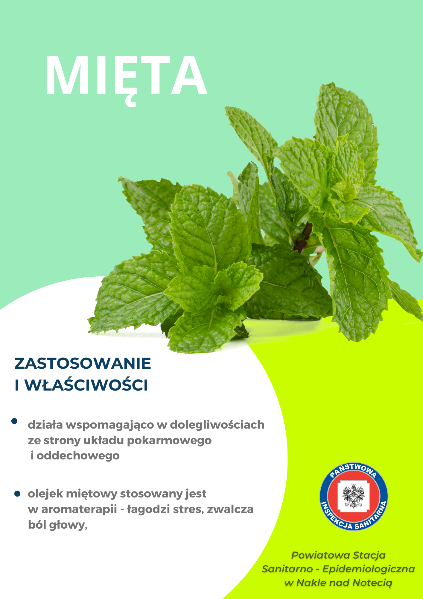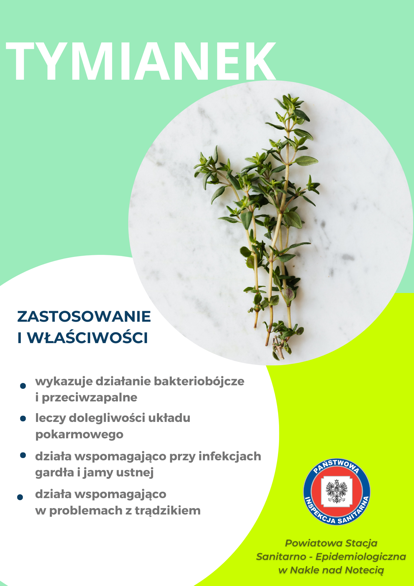 Podczas ostatniego weekendu 13-14.05.2023r pracownice Powiatowej Stacji Sanitarno - Epidemiologicznej w Nakle nad Notecią zorganizowały punkt edukacyjno - informacyjny promujący zdrowie. Dla dzieci i dorosłych przygotowano quiz wiedzy oraz piramidę żywienia. Dużym, zainteresowniem cieszyła się wystawa ziół, dlatego poniżej zamieszczamy tablice informacyjne.