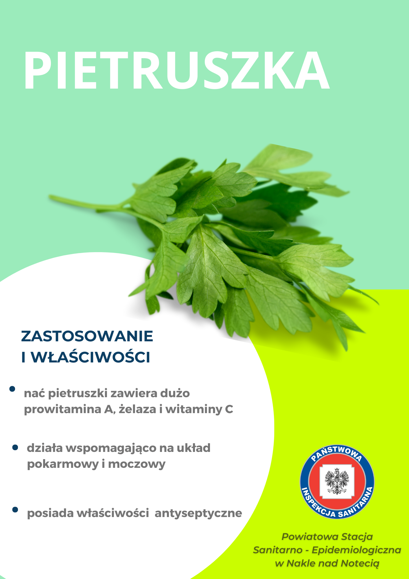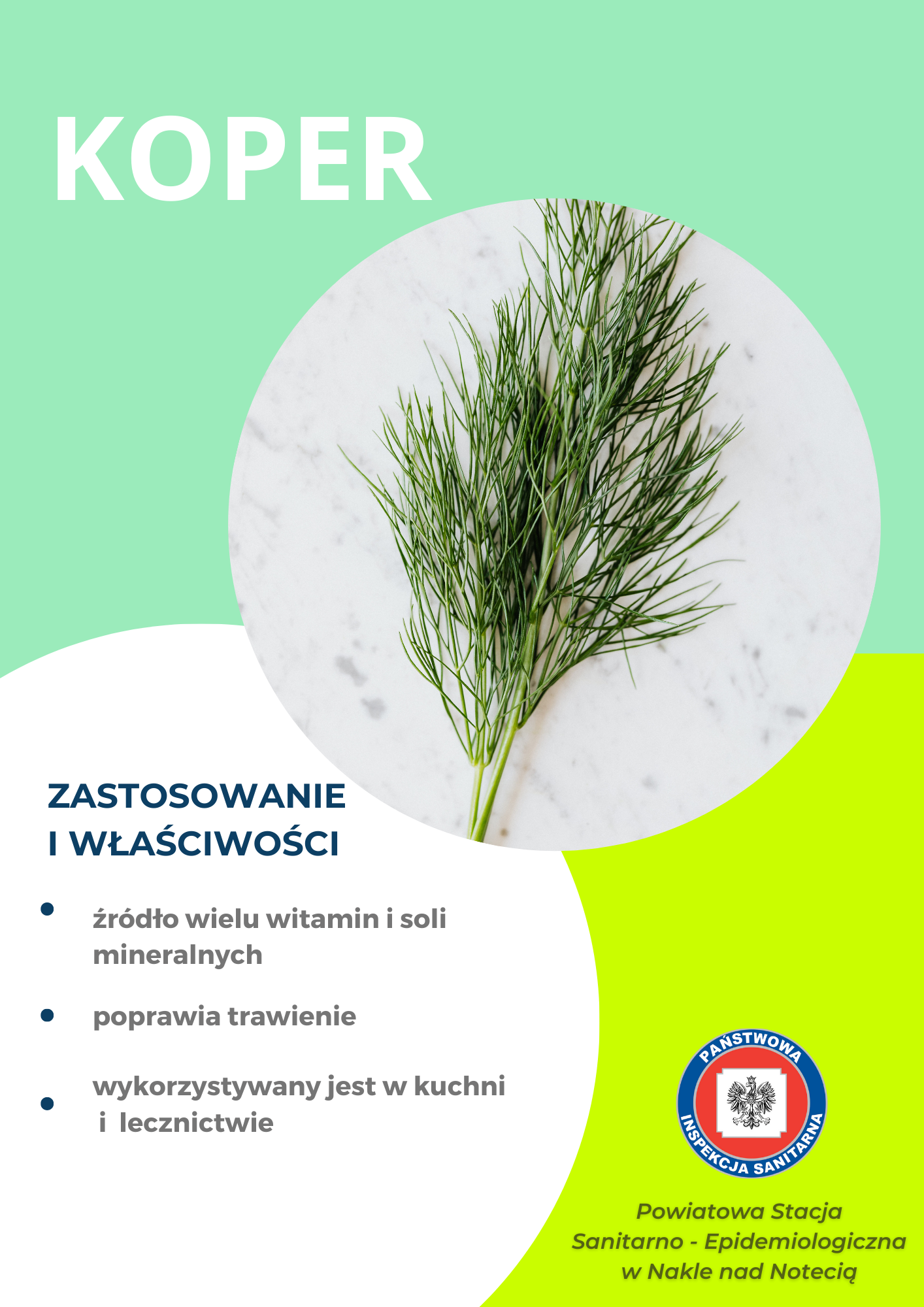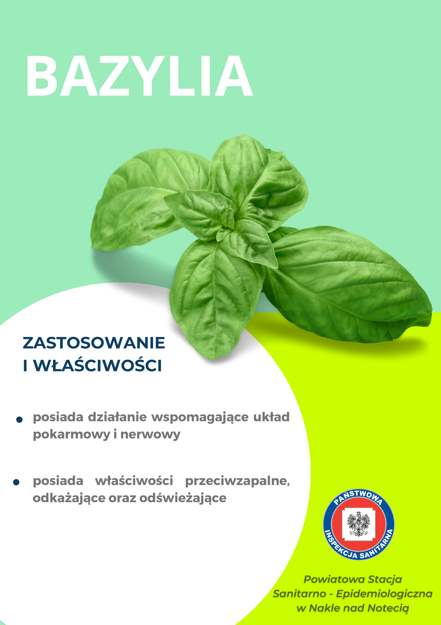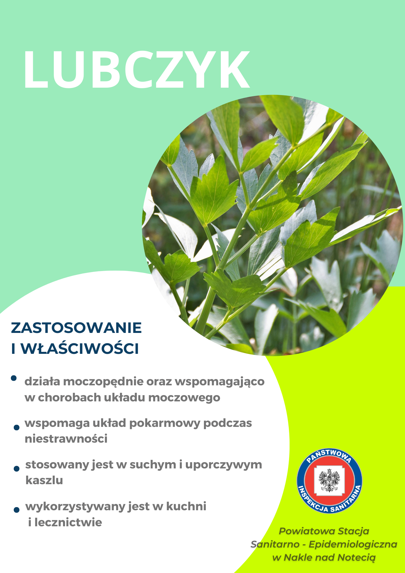 Podczas ostatniego weekendu 13-14.05.2023r pracownice Powiatowej Stacji Sanitarno - Epidemiologicznej w Nakle nad Notecią zorganizowały punkt edukacyjno - informacyjny promujący zdrowie. Dla dzieci i dorosłych przygotowano quiz wiedzy oraz piramidę żywienia. Dużym, zainteresowniem cieszyła się wystawa ziół, dlatego poniżej zamieszczamy tablice informacyjne.
