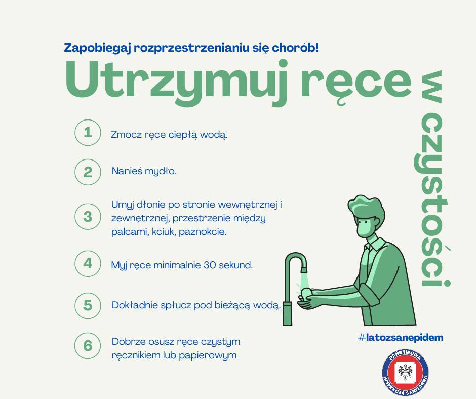 - myj ręce przed przygotowaniem posiłków i przed jedzeniem,