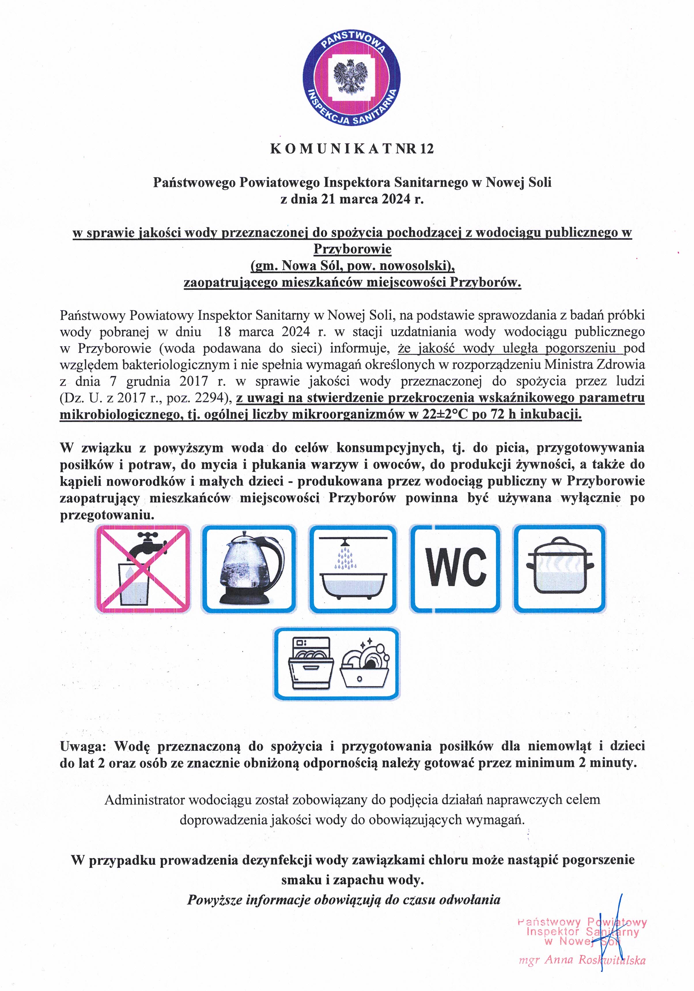 Komunikat nr 12 z 2024r Materiały Komunikat nr 12 jakość wody Przyborów Komunikat_nr_12_jakość_wody_Przyborów.jpg 0.58MB