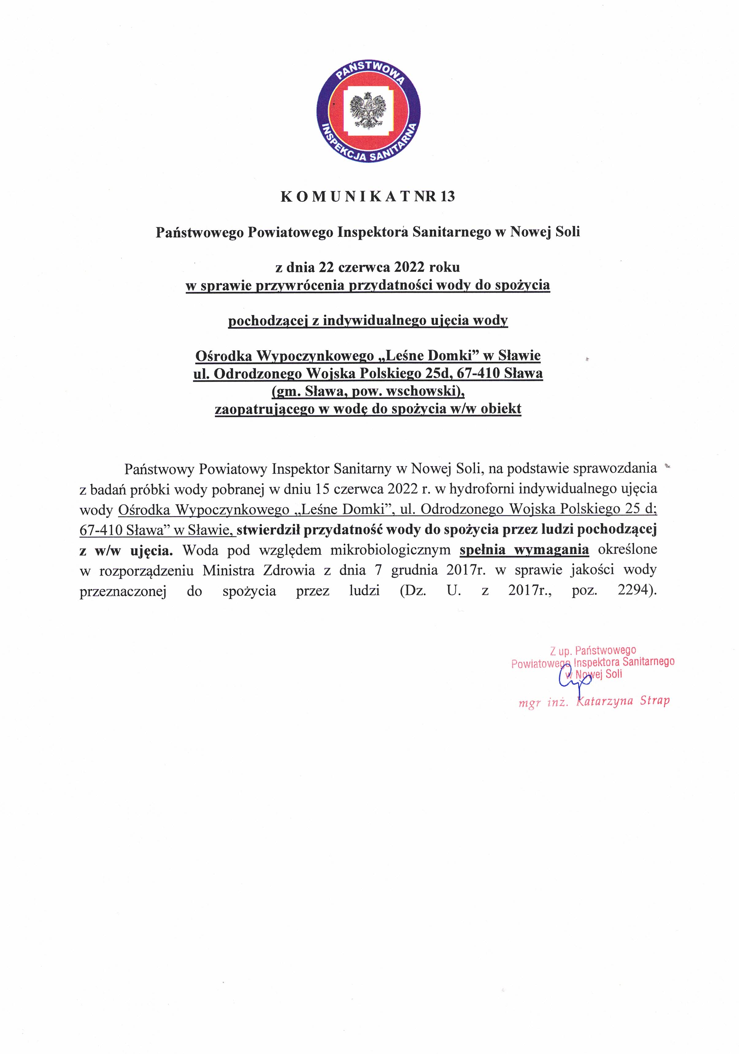 Komunikat nr 13 z 2022r. Materiały komunikat nr 13 przydatności wody OW Leśne Domki komunikat_nr_13_przydatności_wody_OW_Leśne_Domki.jpg 0.35MB