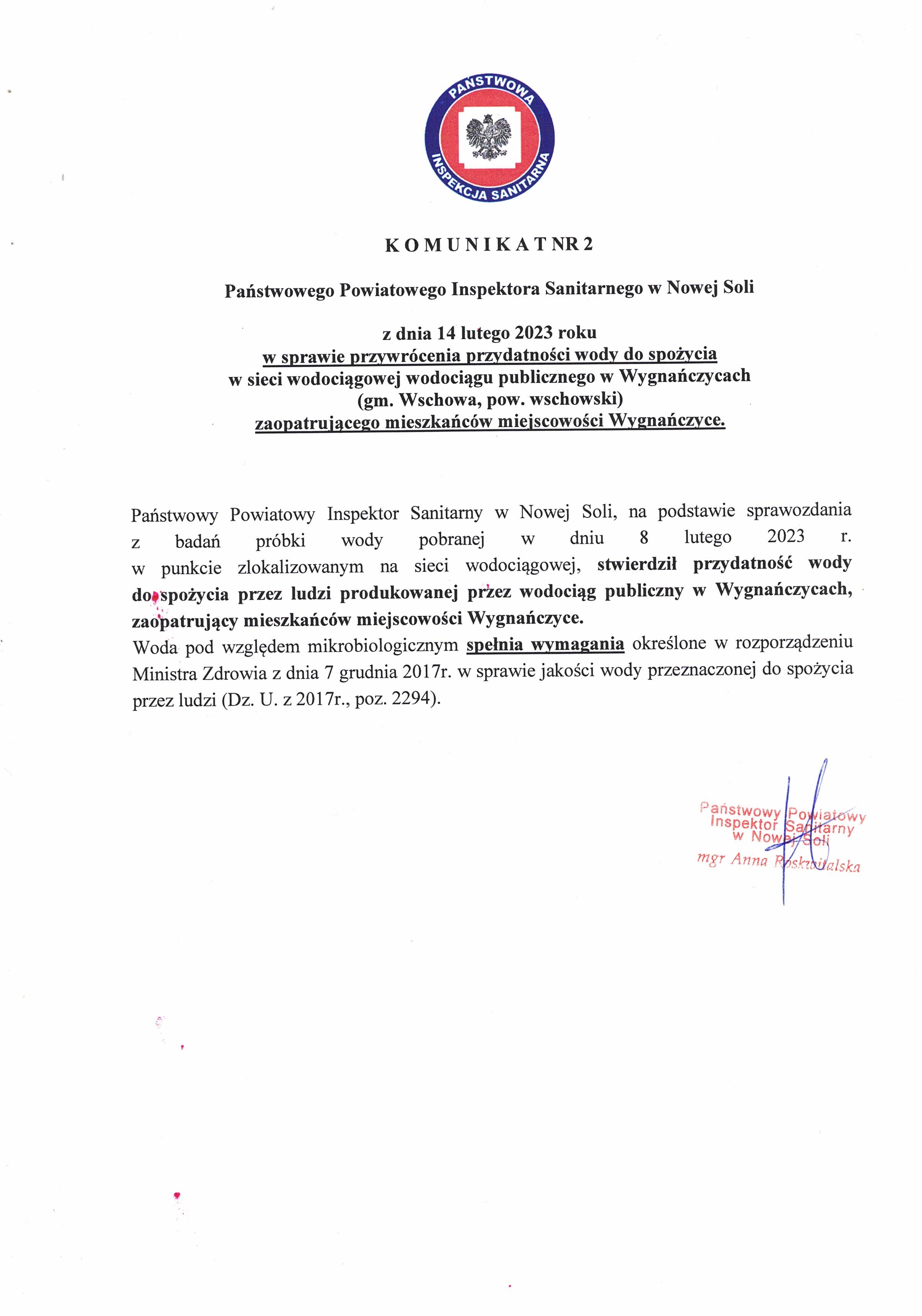 Komunikat nr 2 z 2023r Materiały Komunikat nr 2 Przywrócenie przydatności wody Wygnańczyce Komunikat_nr_2_Przywrócenie_przydatności_wody_Wygnańczyce.jpg 0.58MB