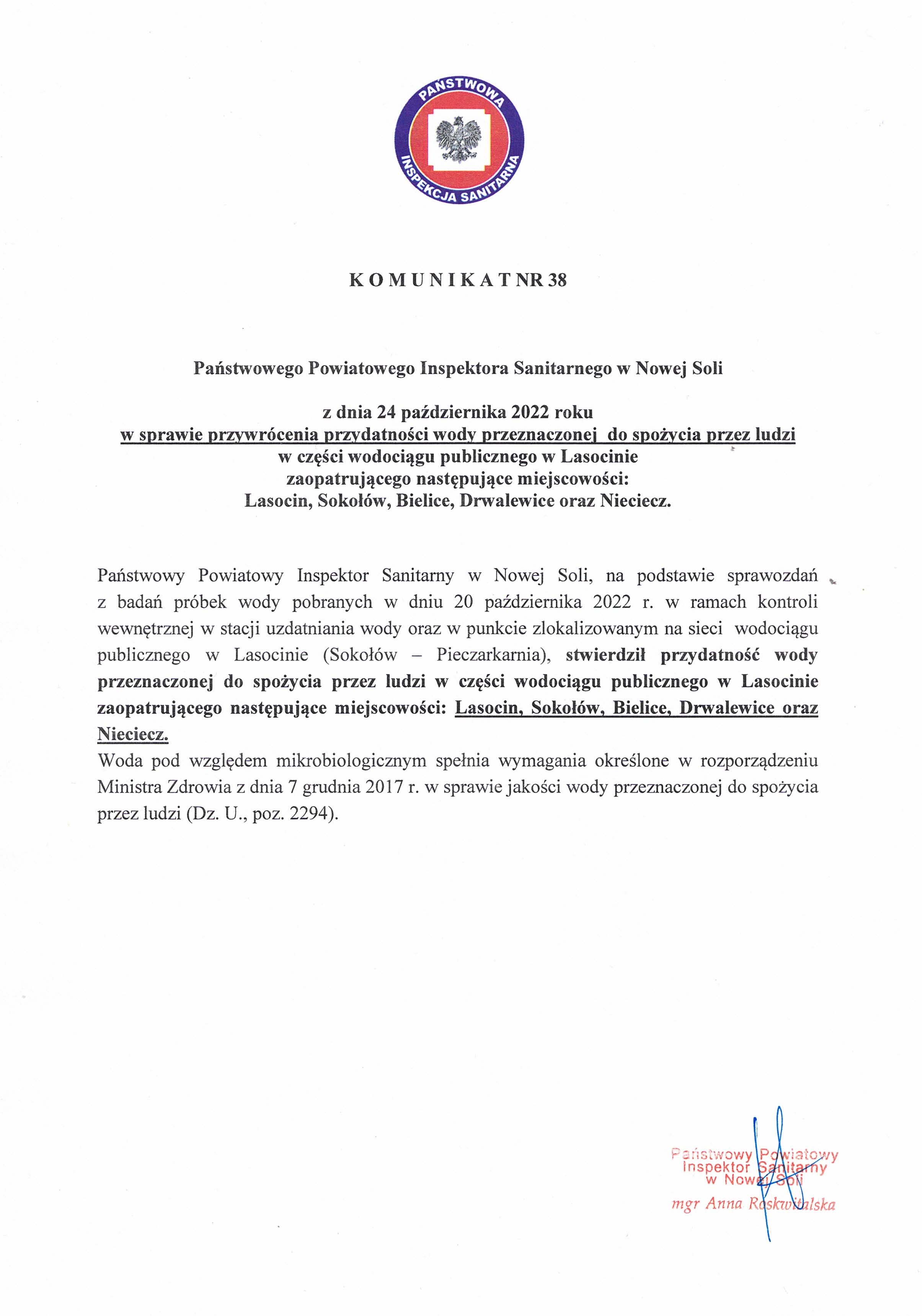 Komunikat nr 38 z 2022r Materiały Komunikat nr 38 przywrócenie przydatności częsci wodociągu Komunikat_nr_38_przywrócenie_przydatności_częsci_wodociągu.jpg 0.65MB