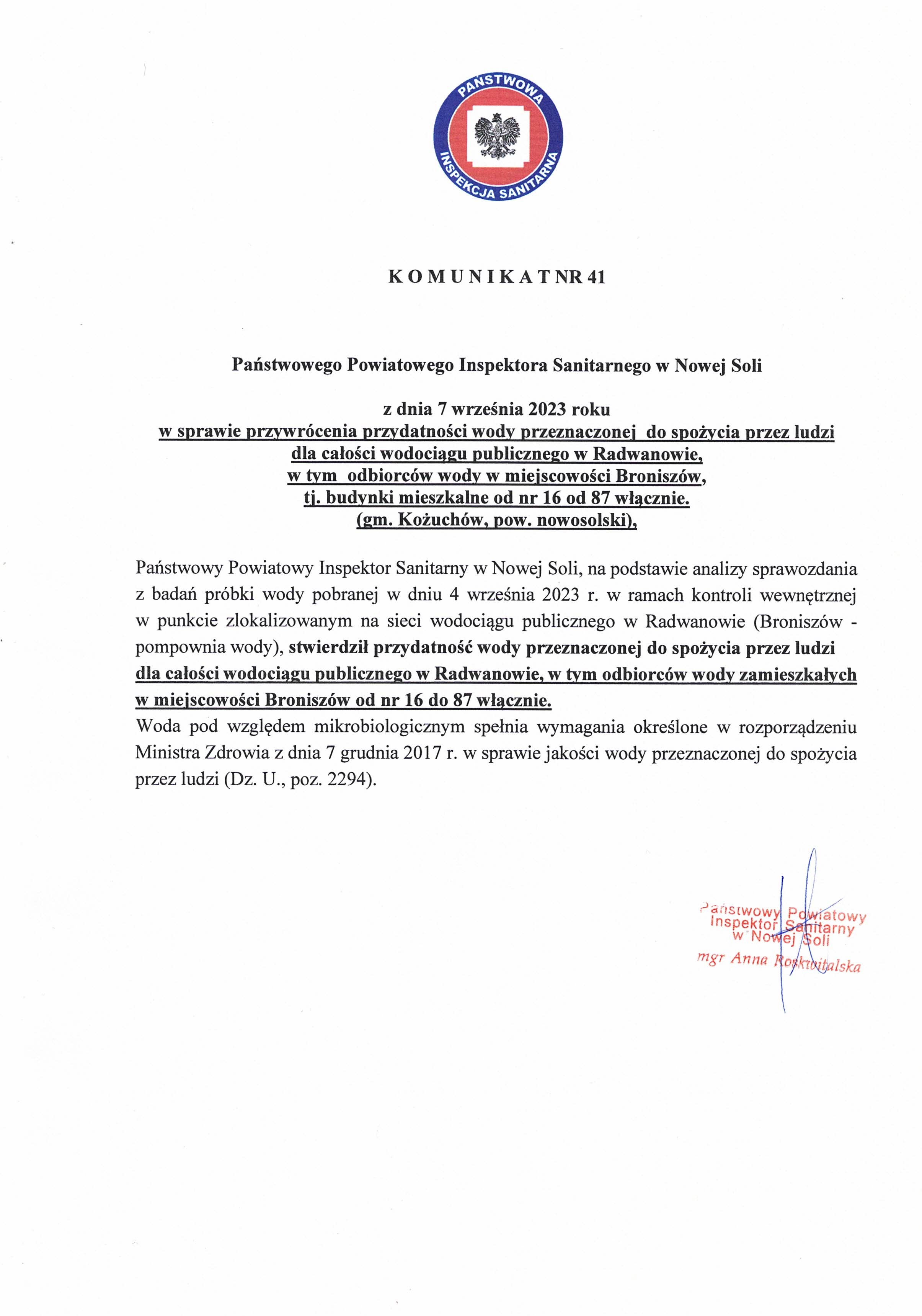 Komunikat nr 41 z 2023r Materiały Komunikat nr 41 przywrócenie przydatności Radwanów Komunikat_nr_41_przywrócenie_przydatności_Radwanów.jpg 0.69MB
