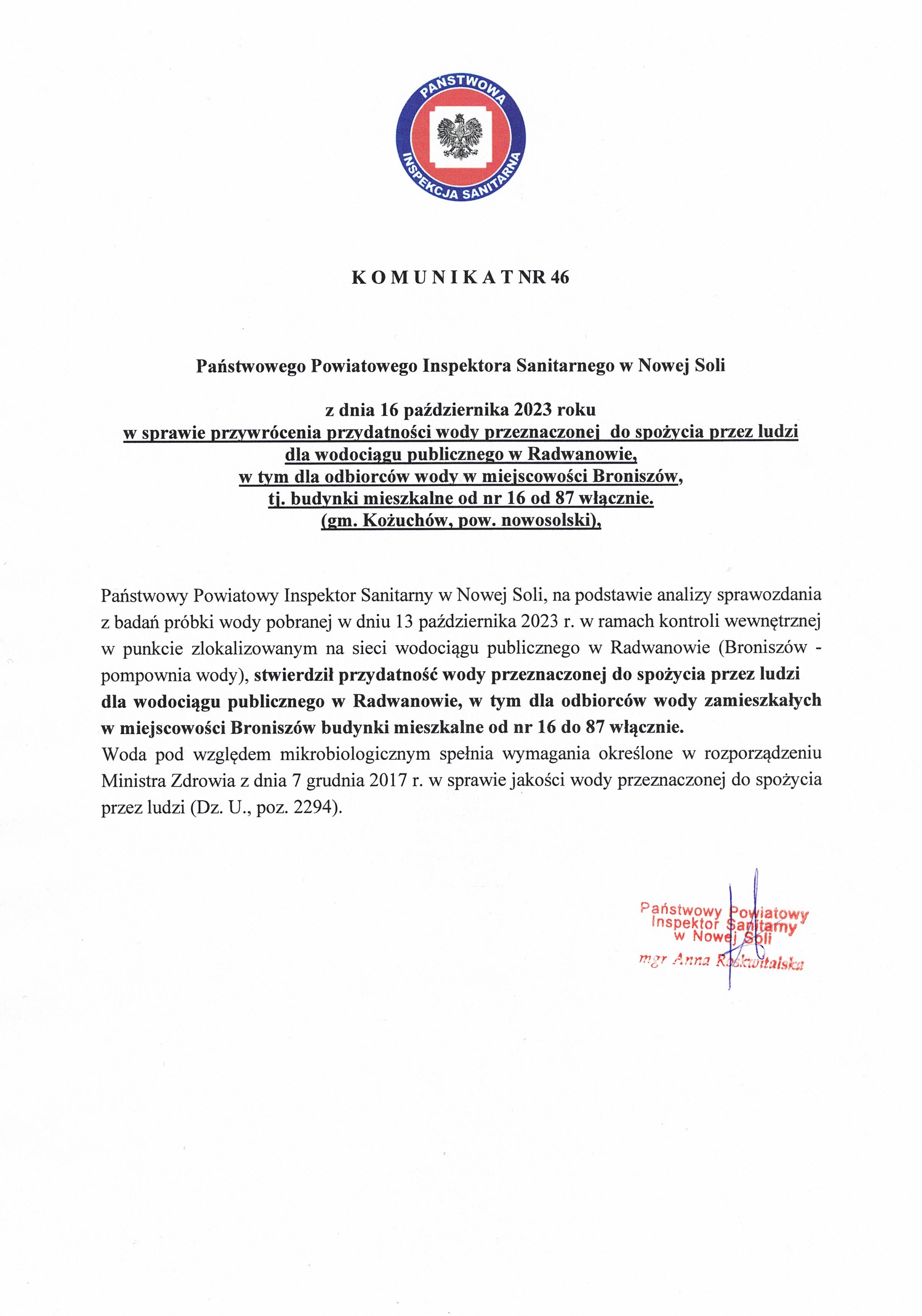 Komunikat nr 46 z 2023r Materiały Komunikat nr 46 przywrócenie przydatności Radwanów Komunikat_nr_46_przywrócenie_przydatności_Radwanów.jpg 0.71MB