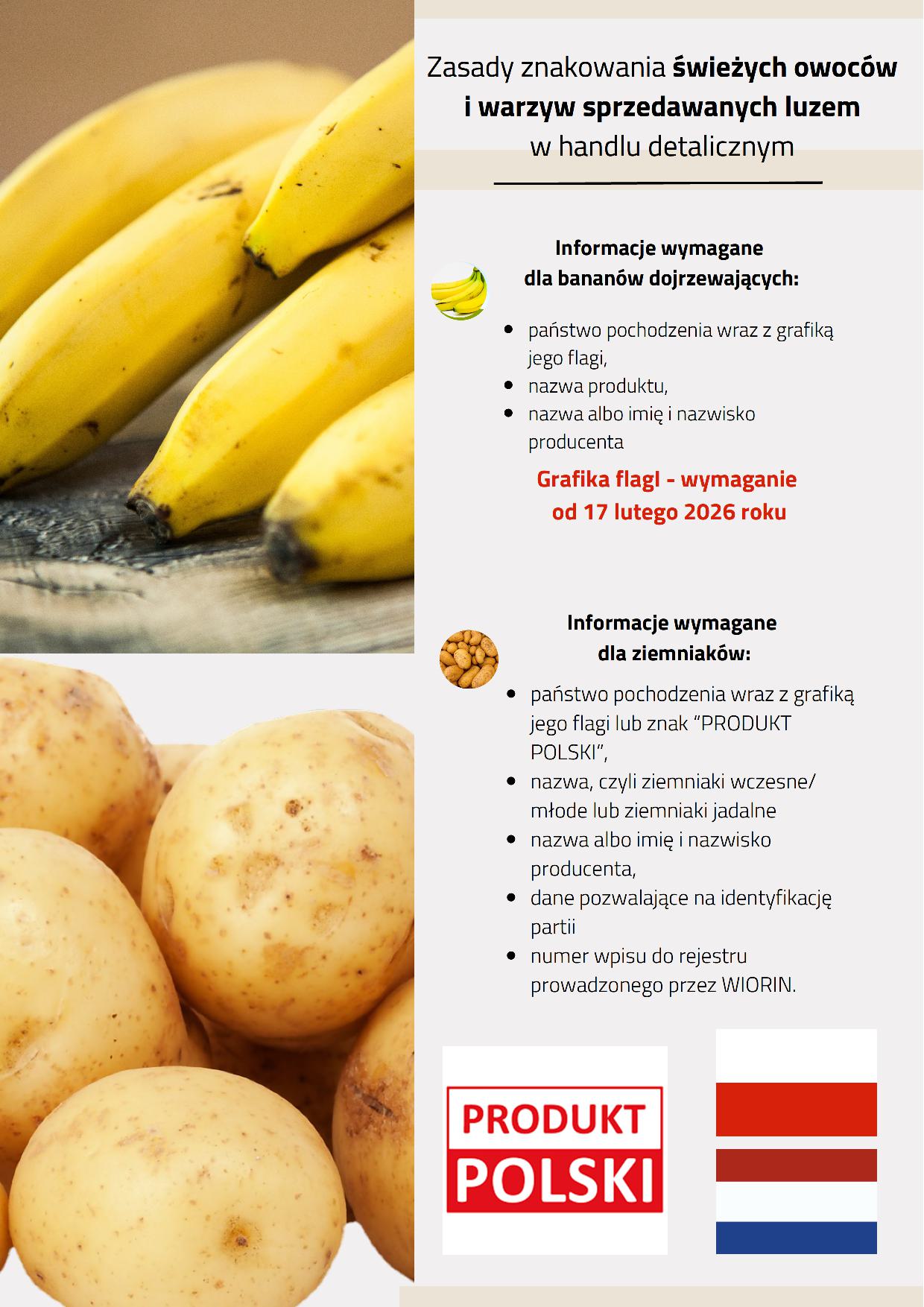 Zasady znakowania świeżych owoców i warzyw sprzedawanych luzem w handlu detalicznym 23.03.2026 Materiały Ulotka zasady znakowania owoce i warzywa Ulotka_zasady_znakowania_owoce_i_warzywa.pdf 10.11MB Zdjęcia (2) Pokaż zdjęcie 1 z galerii. Pokaż zdjęcie 2 z galerii.