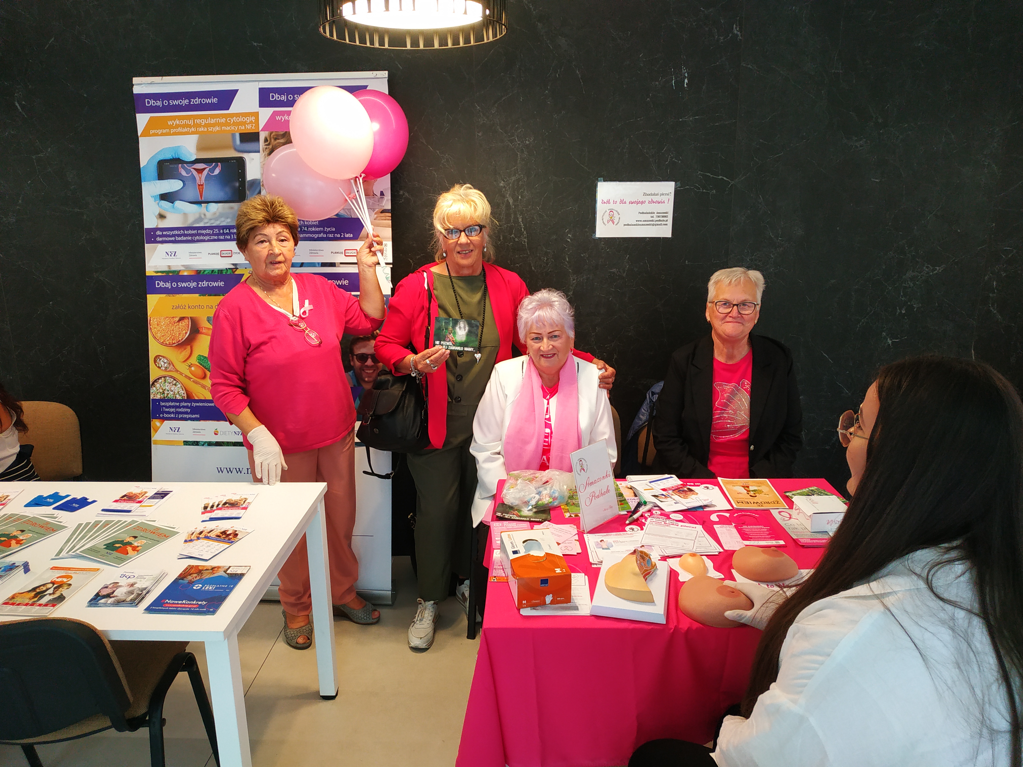 Podhalańskie Amazonki, to wyjątkowo zróżnicowana grupa kobiet o najróżniejszych zainteresowaniach, które łączy jedno: zachorowały na raka piersi, a teraz pomagają innym kobietom wygrać walkę, którą same już mają za sobą. Krystyna Iskrzycka Prezes Stowarzyszenia opowiedziała o samobadaniu piersi, które jest niezwykle ważne, ponieważ może pomóc we wczesnym wykryciu zmian w piersiach, w tym nowotworów, takich jak rak piersi. Wczesne wykrycie tego typu zmian znacznie zwiększa szanse na skuteczne leczenie i wyleczenie. Został wyświetlony film przedstawiający techniki samobadania piersi. Przedstawicielki Stowarzyszenia przygotowały stoisko edukacyjne, przy którym edukowały młodzież w zakresie prawidłowego samobadania piersi.