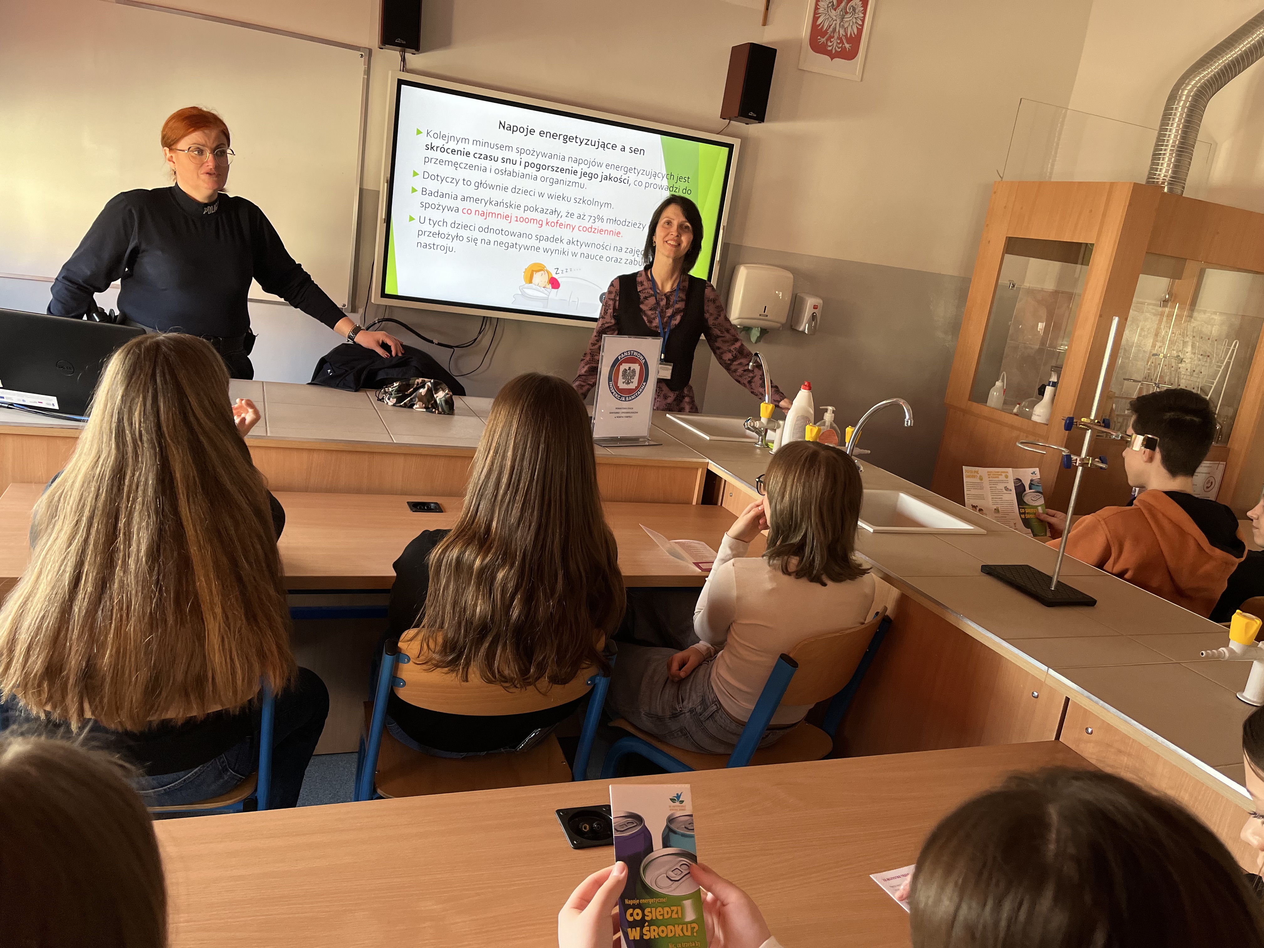 - W ramach działań programowych realizowaliśmy programy profilaktyczne w placówkach oświatowych miin.: odbyło się spotkanie edukacyjne w SP nr 2 w Nowym Tomyślu, na którym wraz z przedstawicielem KPP w Nowym Tomyślu przeprowadziliśmy pogadankę na temat wpływu energetyków na zdrowie a także konsekwencjach prawnych związanych z zażywaniem środków odurzających; w SP nr 1 odbyła sie spotkanie z dziećmi klas I-III w ramach projektu "Mam zdrowe zęby"; w ramach programu edukacyjnego "Mamo, Tato - co Wy na to?" przeprowadzono pogadankę na temat zdrowego odżywiania, higieny osobistej i profilaktyki chorób odkleszczowych. W I Szkole Akademickiej w Nowym Tomyślu przeprowadzono również akcję oceniającą obciążenie uczniów ciężarem tornistrów.